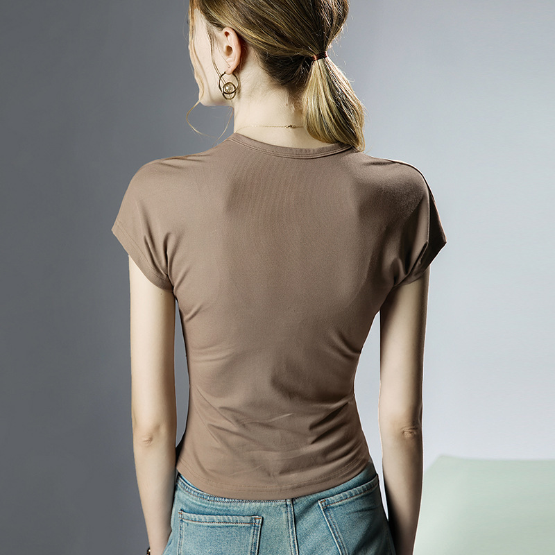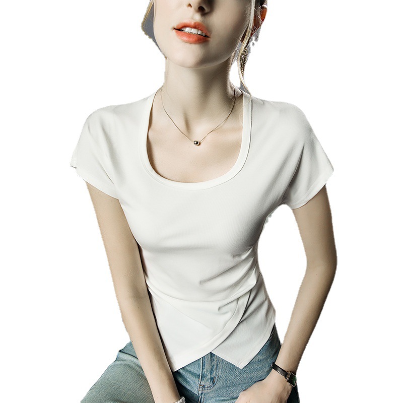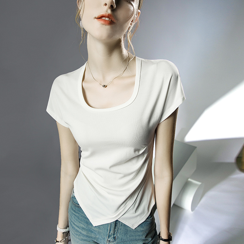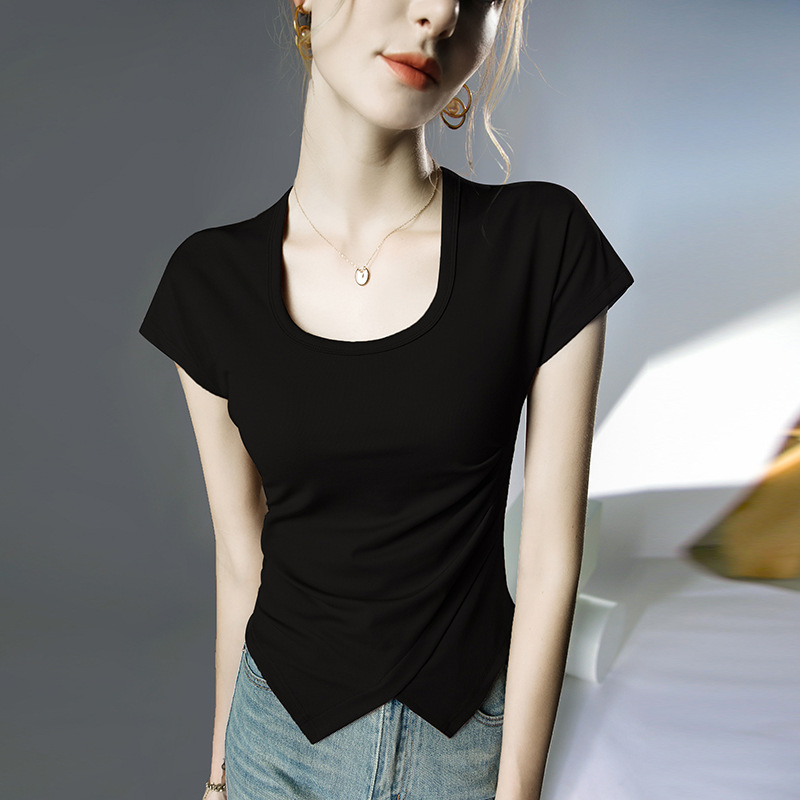 设计感短袖方领夏季新款洋气上衣盖袖T恤女