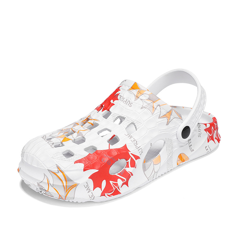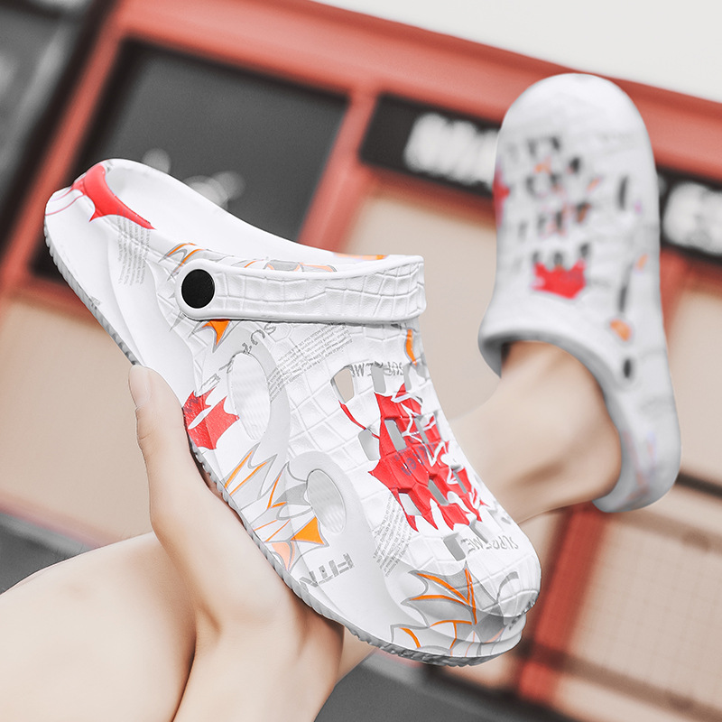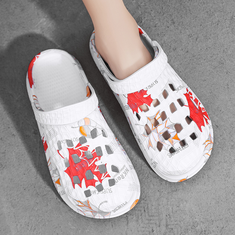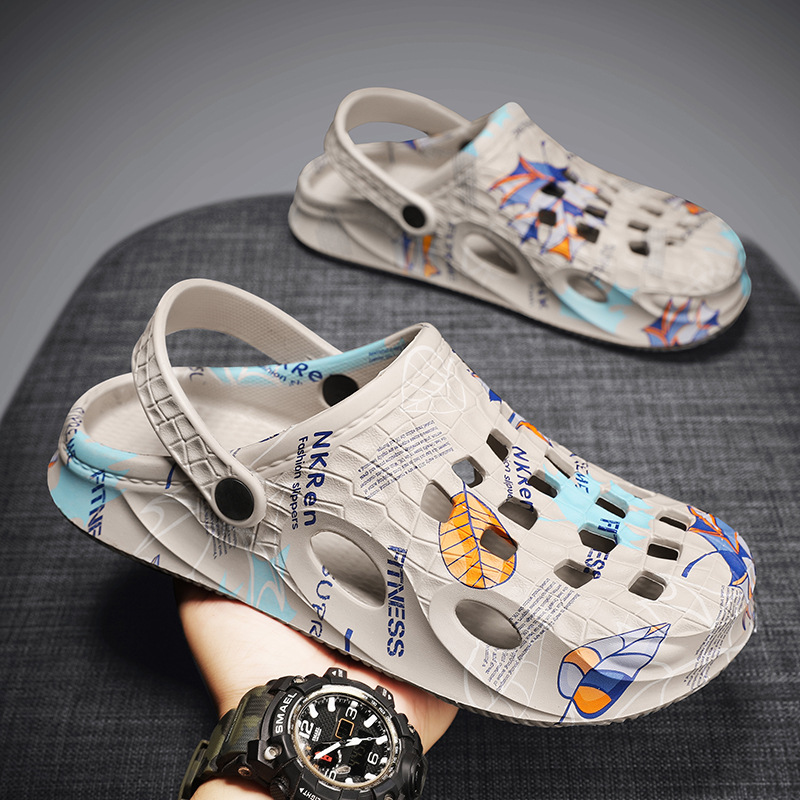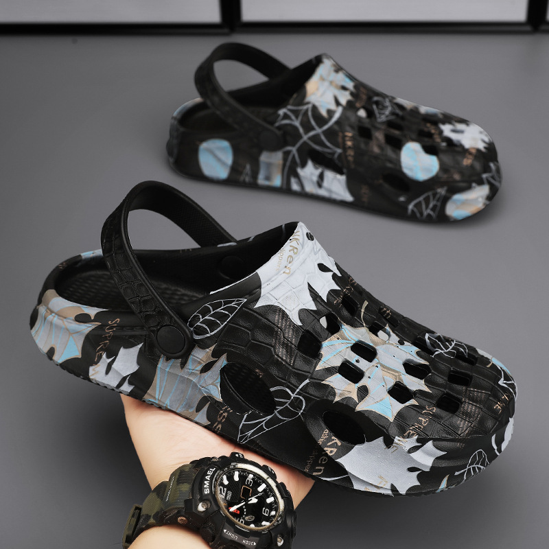 男士洞洞鞋休闲透气包头拖鞋男款沙滩鞋印花夏家居防滑外穿凉拖男