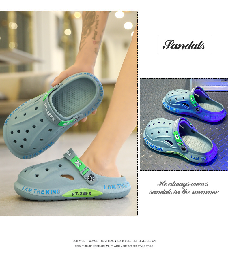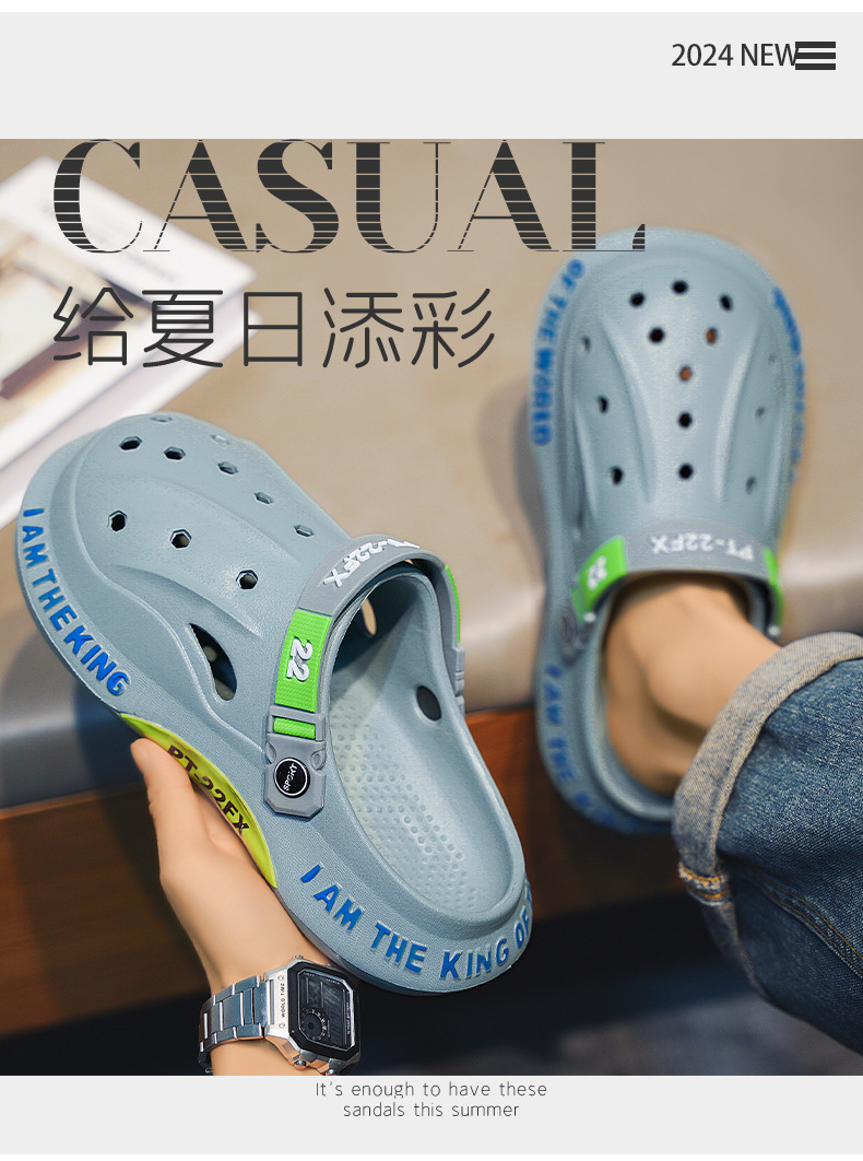 新款沙滩鞋男士洞洞鞋EVA包头凉拖轻便柔软拖鞋一鞋两穿凉鞋