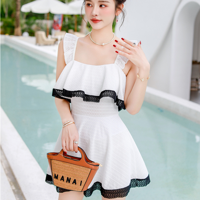 新款连体裙式游泳衣韩国小碎花保守学院风显瘦泡温泉泳装度假