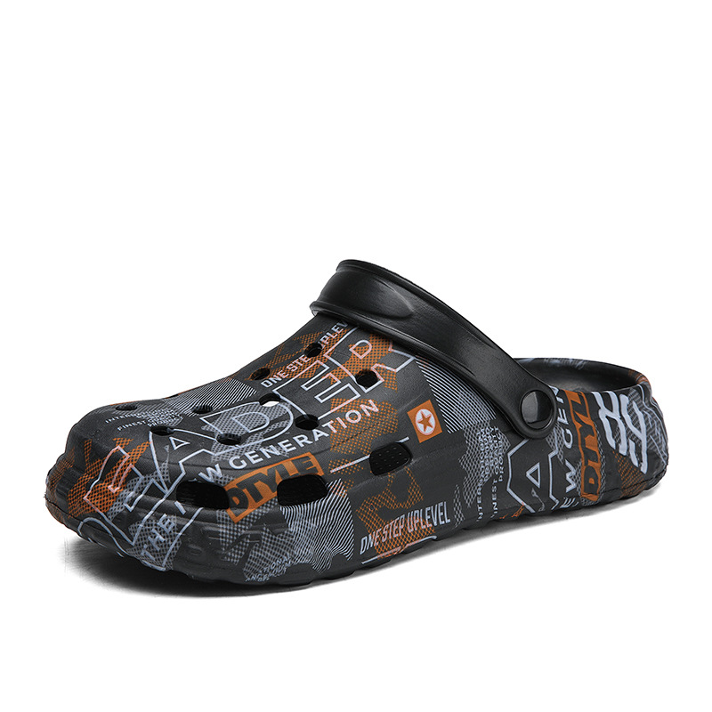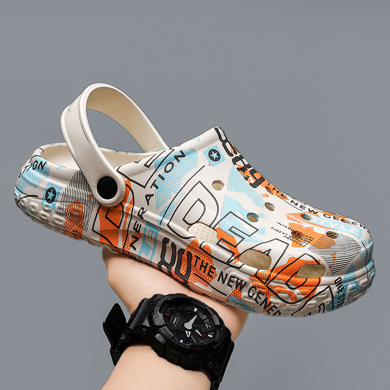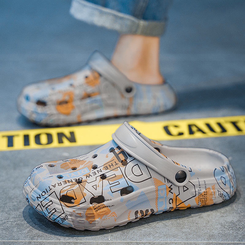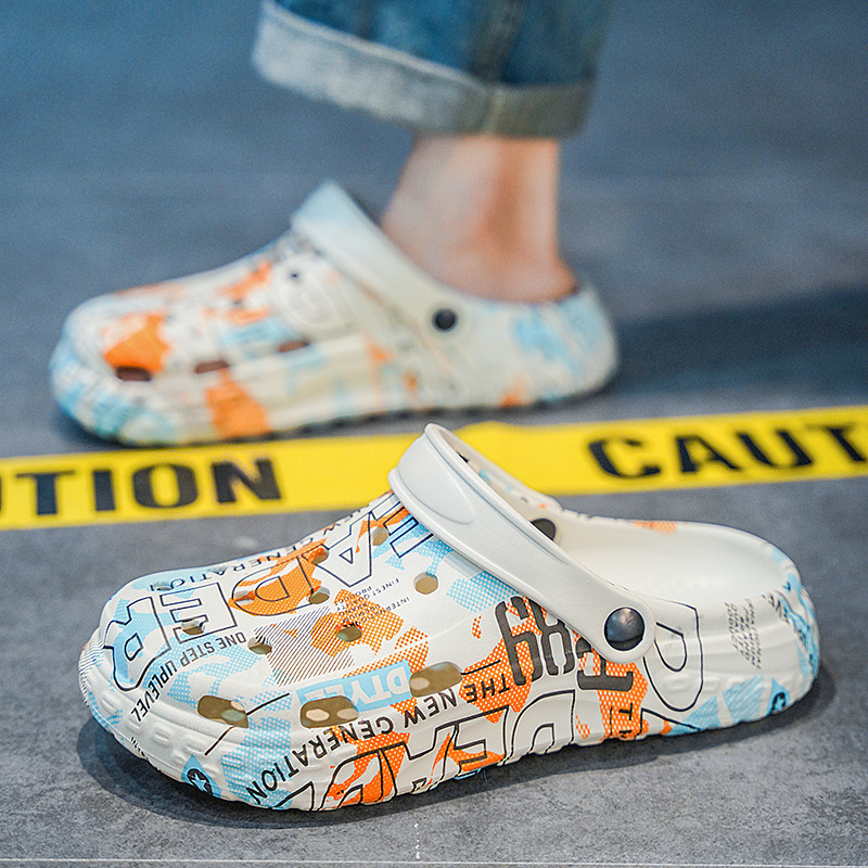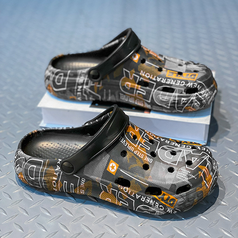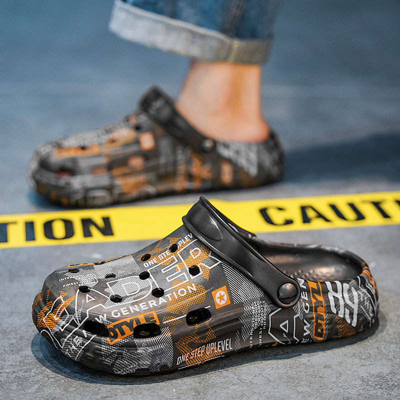 椰子迷彩洞洞鞋新款凉鞋男士沙滩鞋外出旅游鞋休闲包头凉拖男