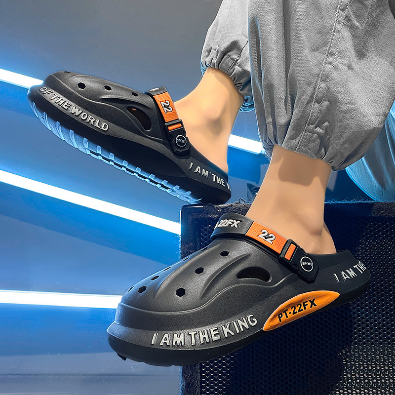 椰子花园洞洞鞋新款凉鞋男士沙滩鞋外出旅游鞋休闲学生凉拖潮
