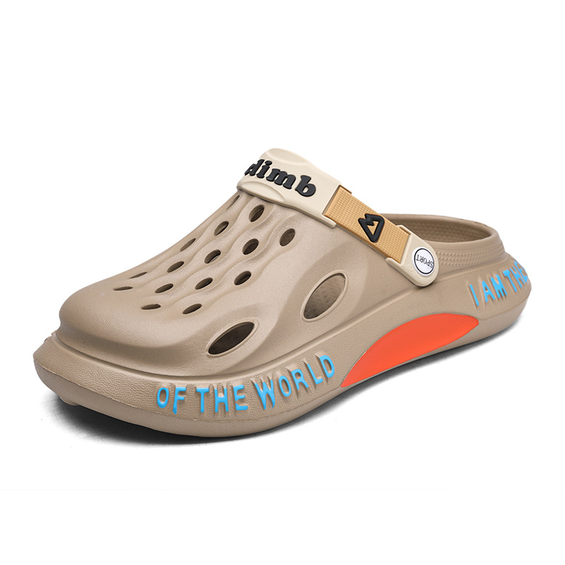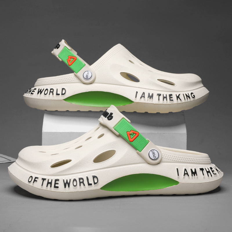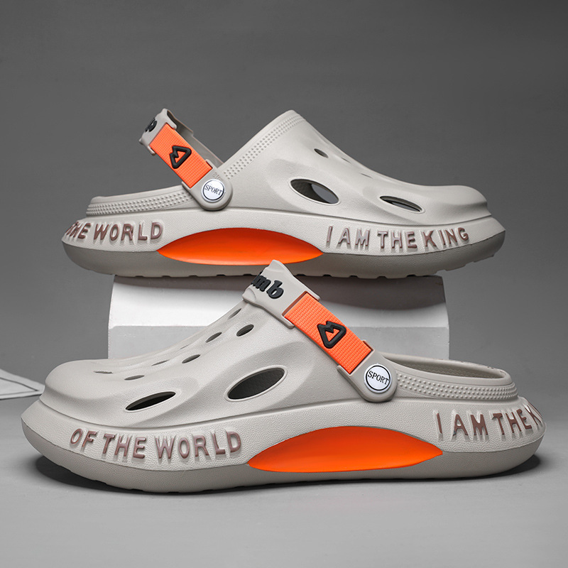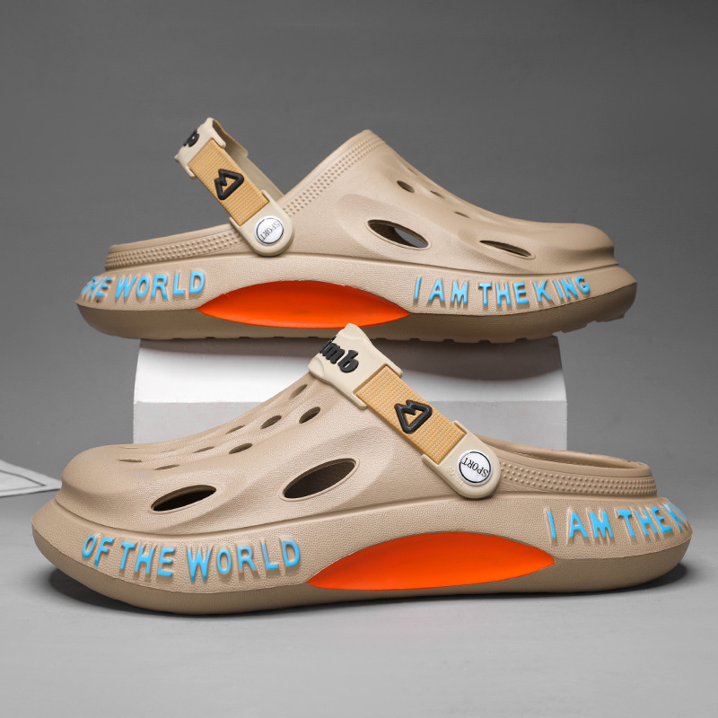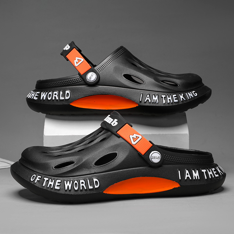 跨境大码洞洞鞋男士夏季新款家居外穿沙滩鞋男款凉鞋休闲包头拖鞋