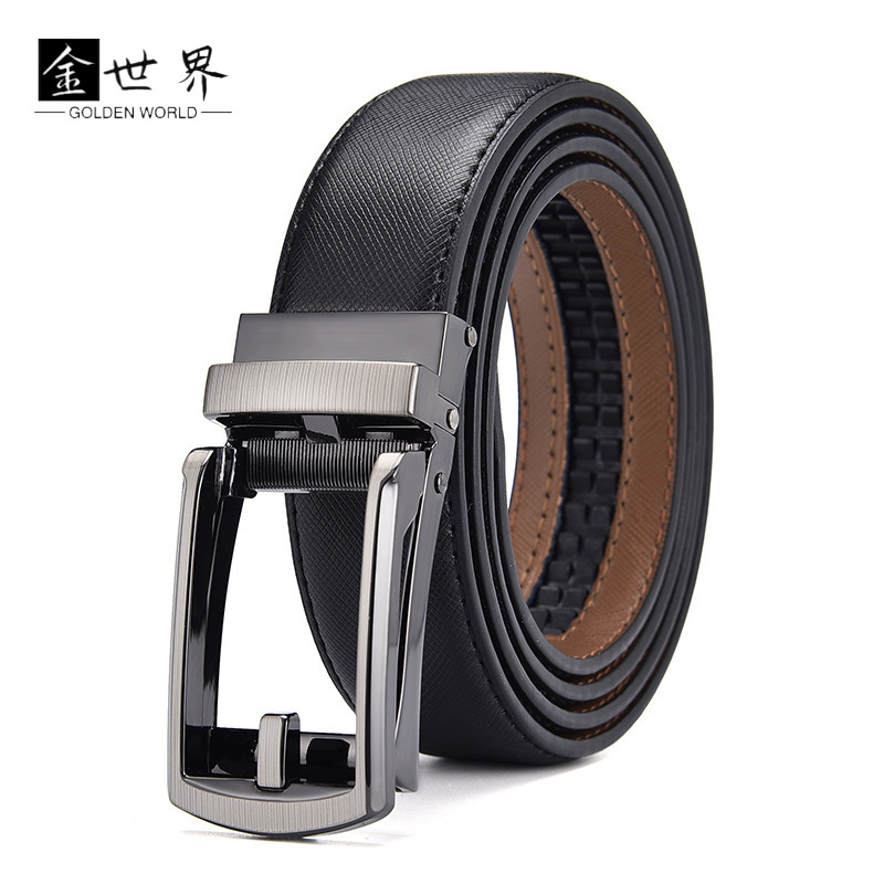 真皮自动扣皮带批发 商务男士自动扣皮带 百搭男士牛皮自动扣腰带