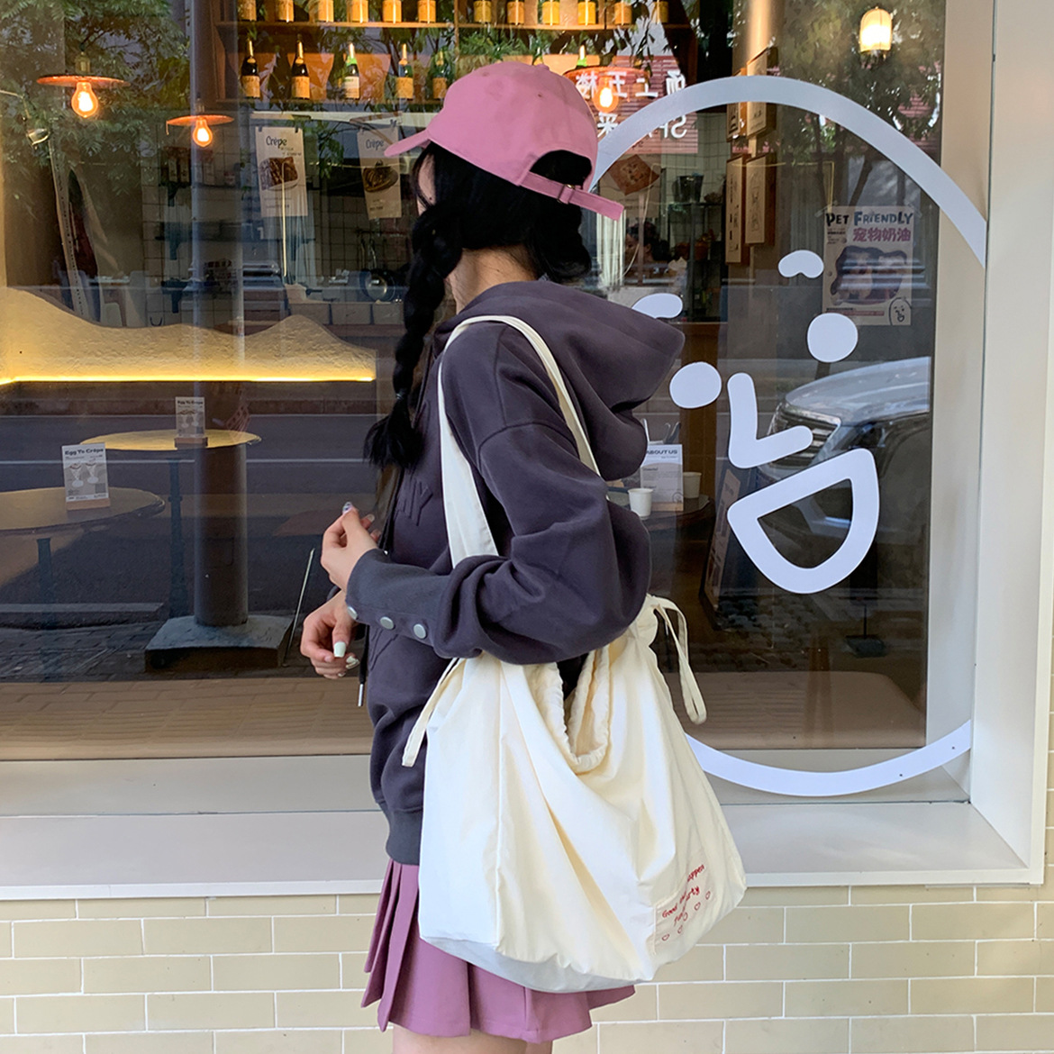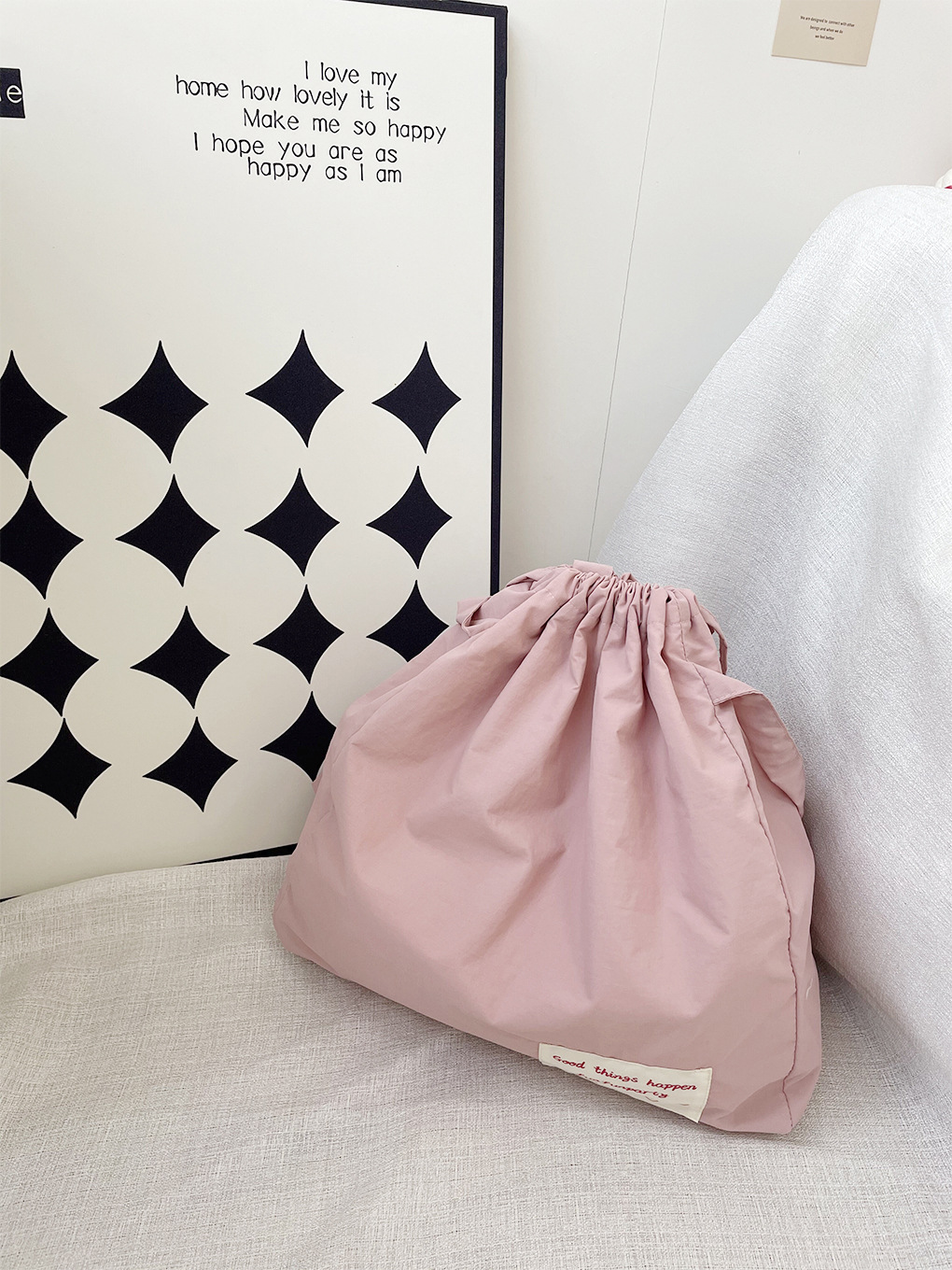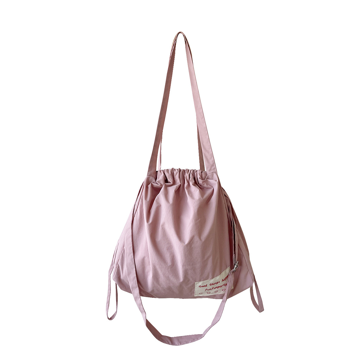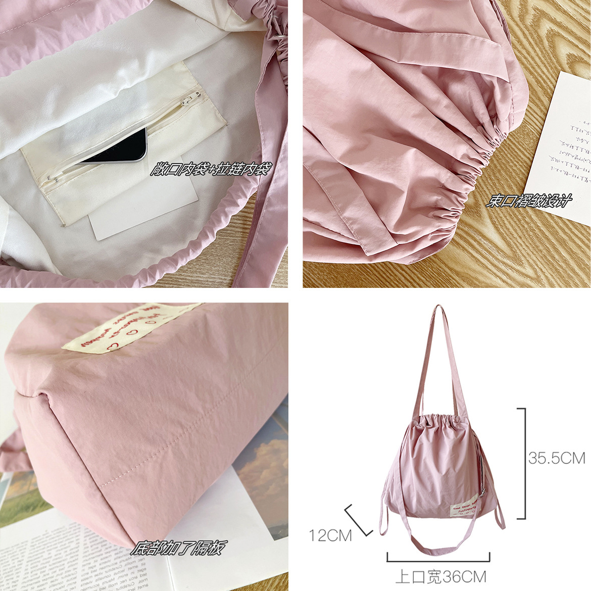 尼龙束口托特包-豆沙粉