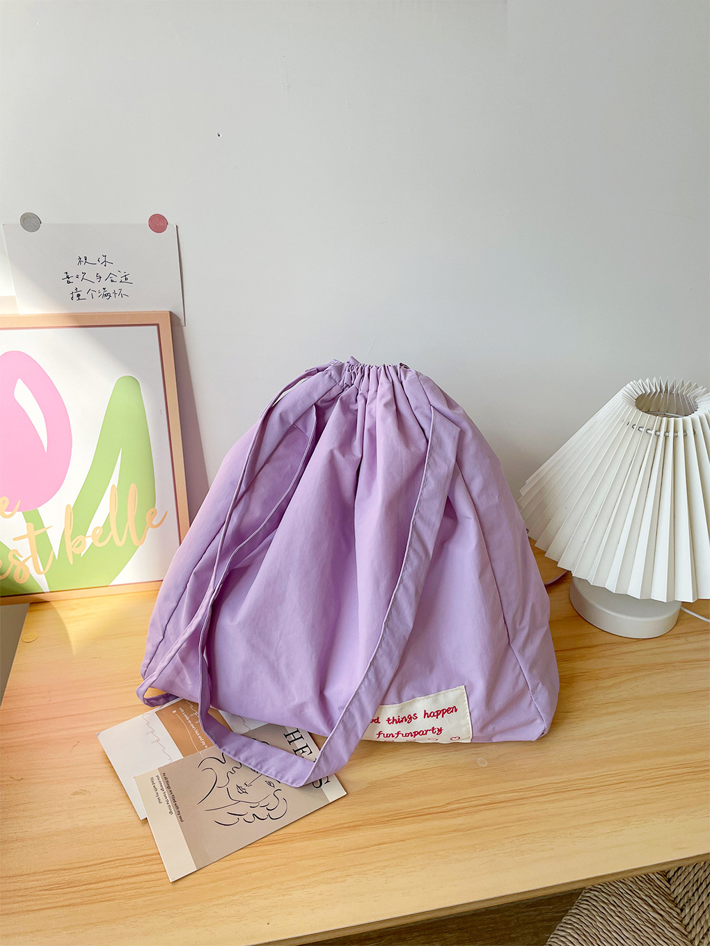 尼龙束口托特包-香芋紫