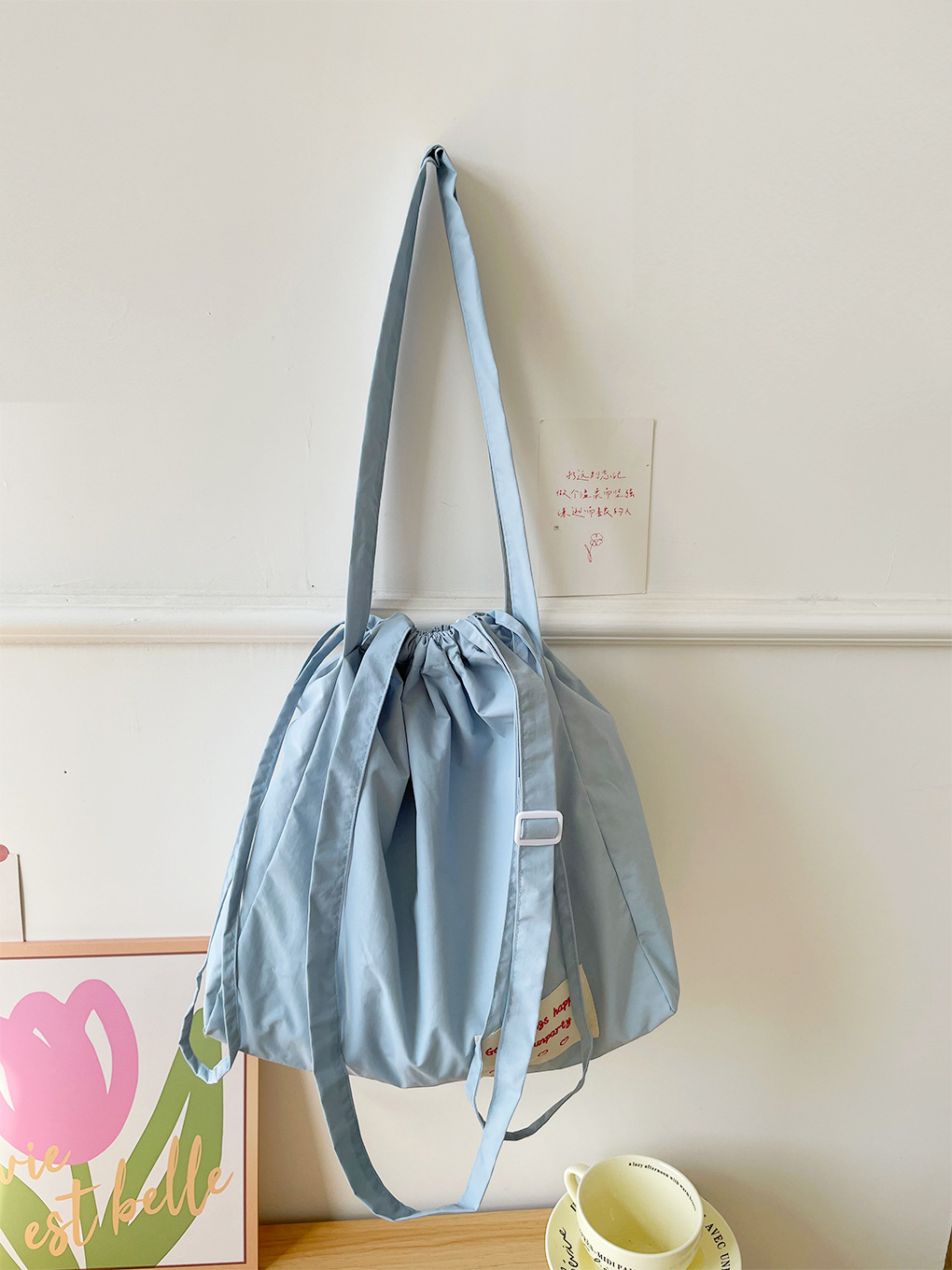 尼龙束口托特包-奶油蓝
