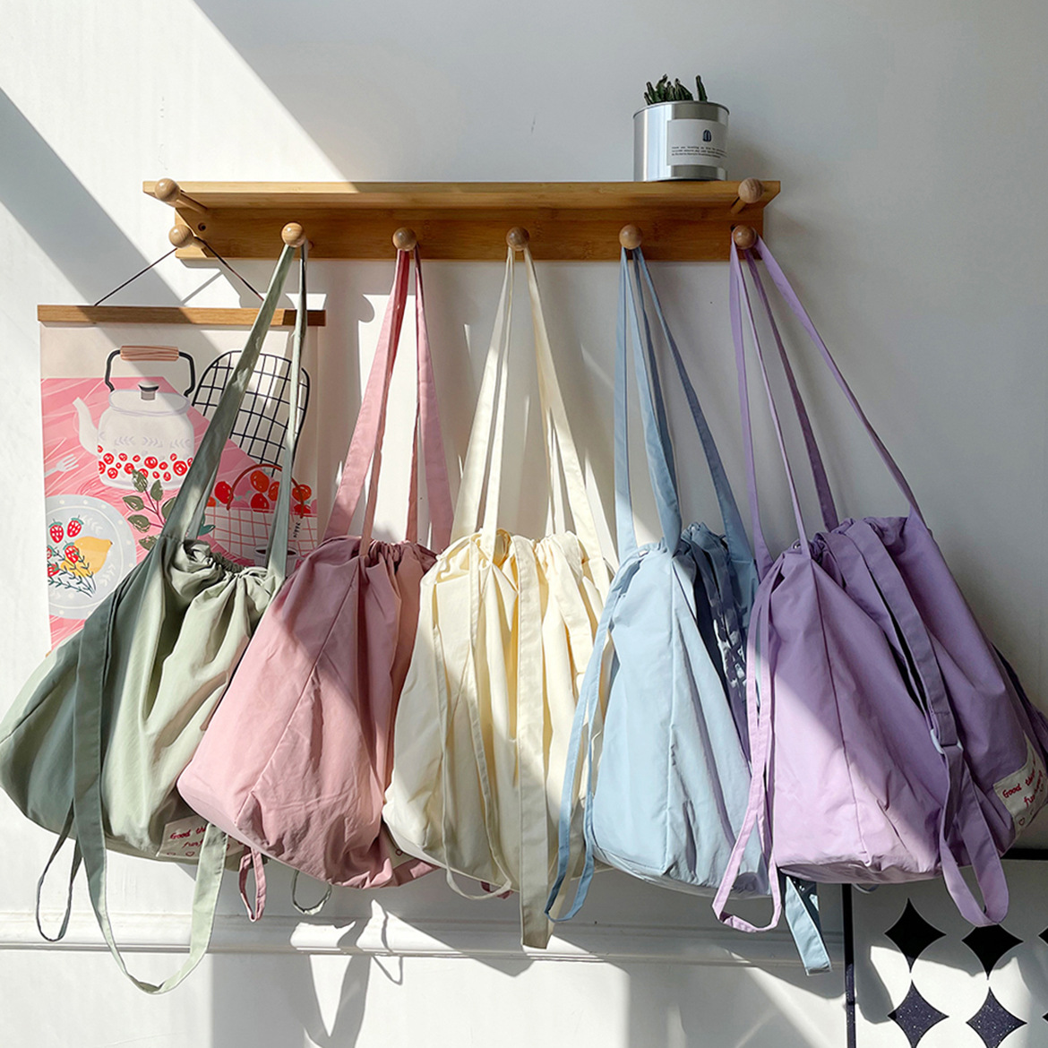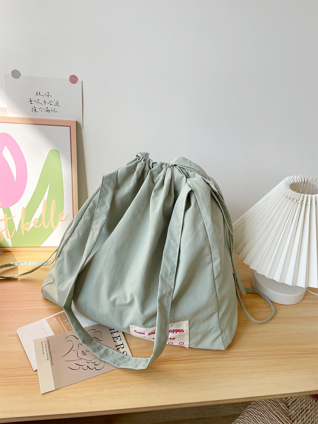 尼龙束口托特包-薄荷绿