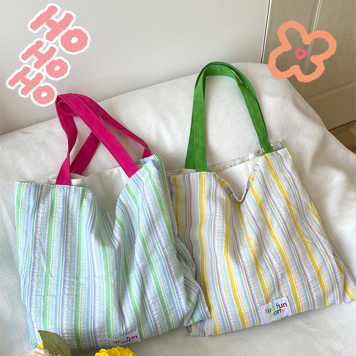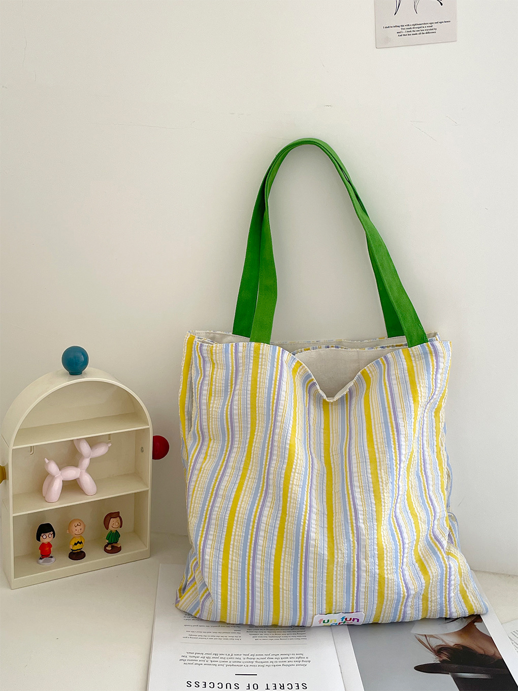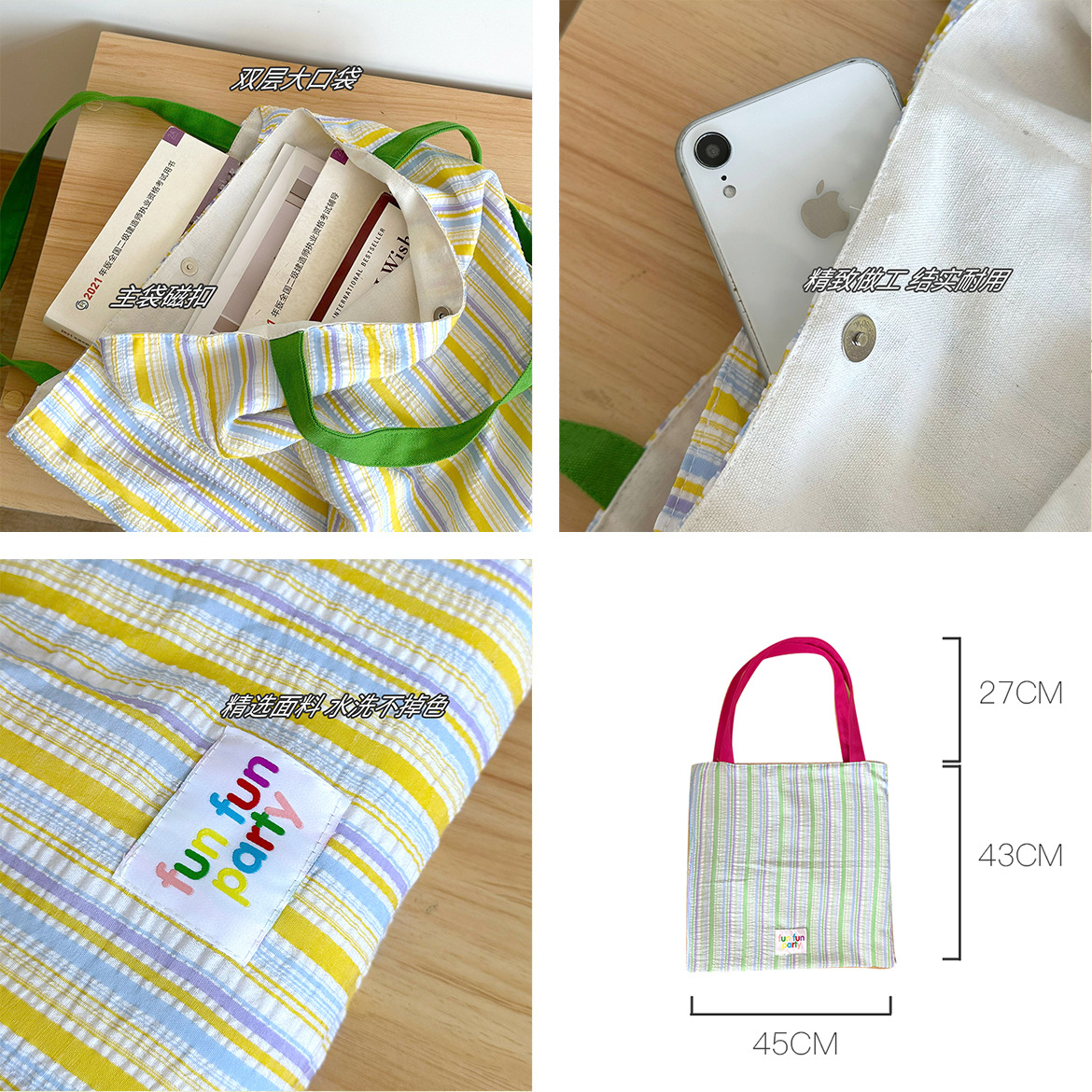自制条纹双层包大容量清新褶皱单肩包新款学院风托特包学生包