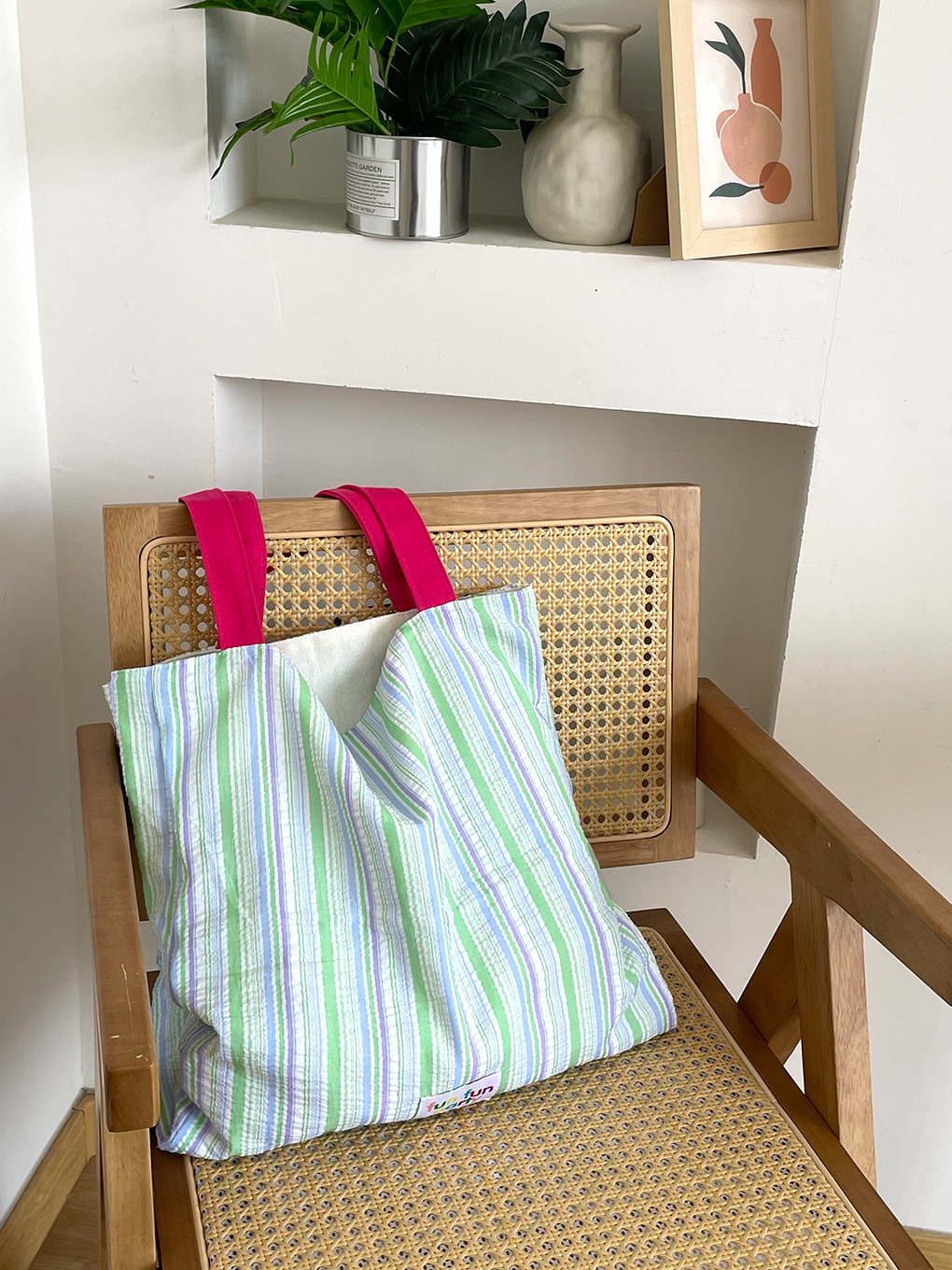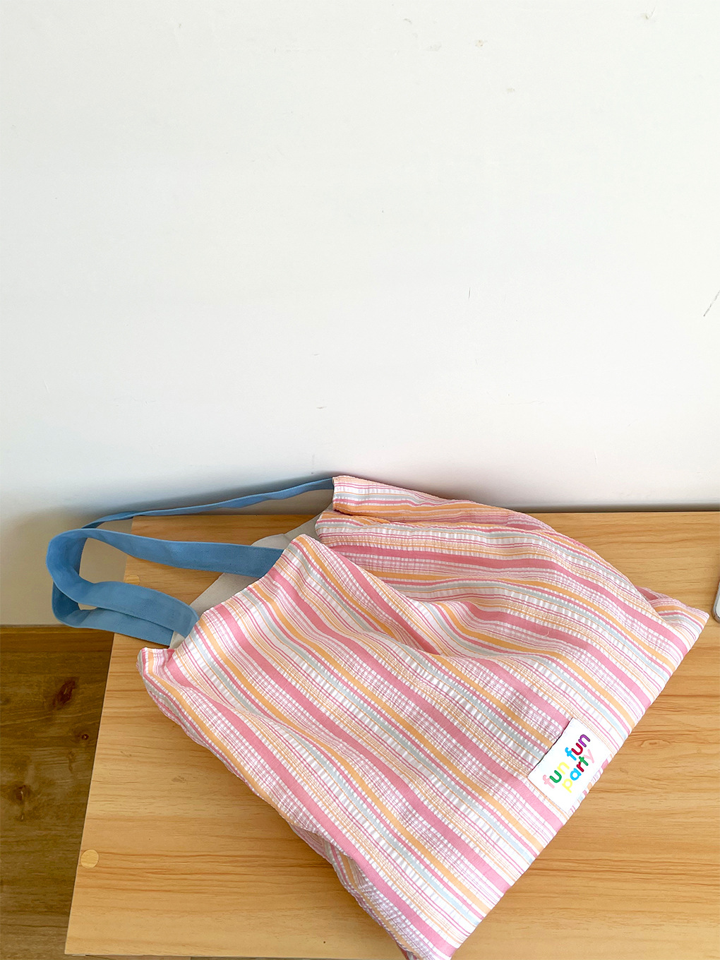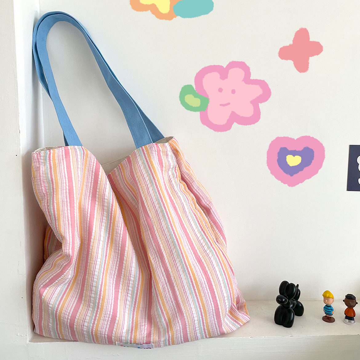 自制条纹双层包大容量清新褶皱单肩包新款学院风托特包学生包