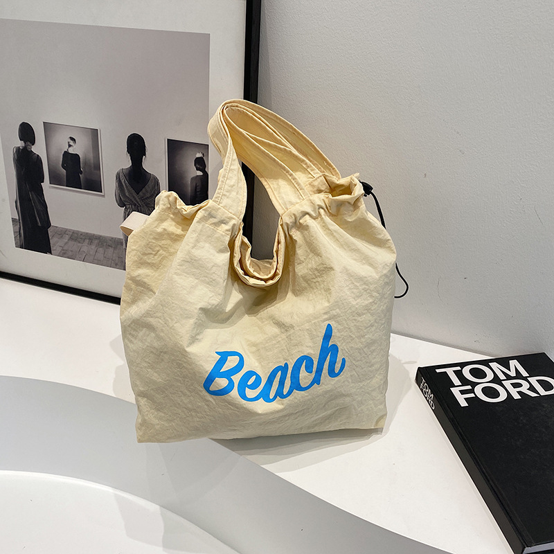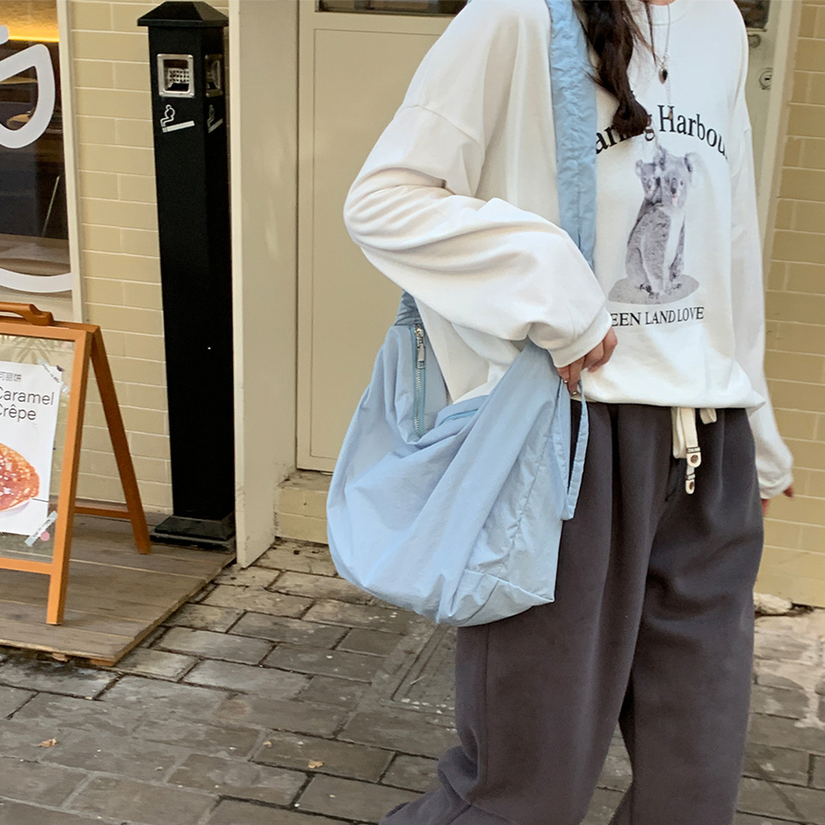 韩系简约大容量尼龙斜挎包褶皱抽绳单肩包女ins休闲通勤包健身包