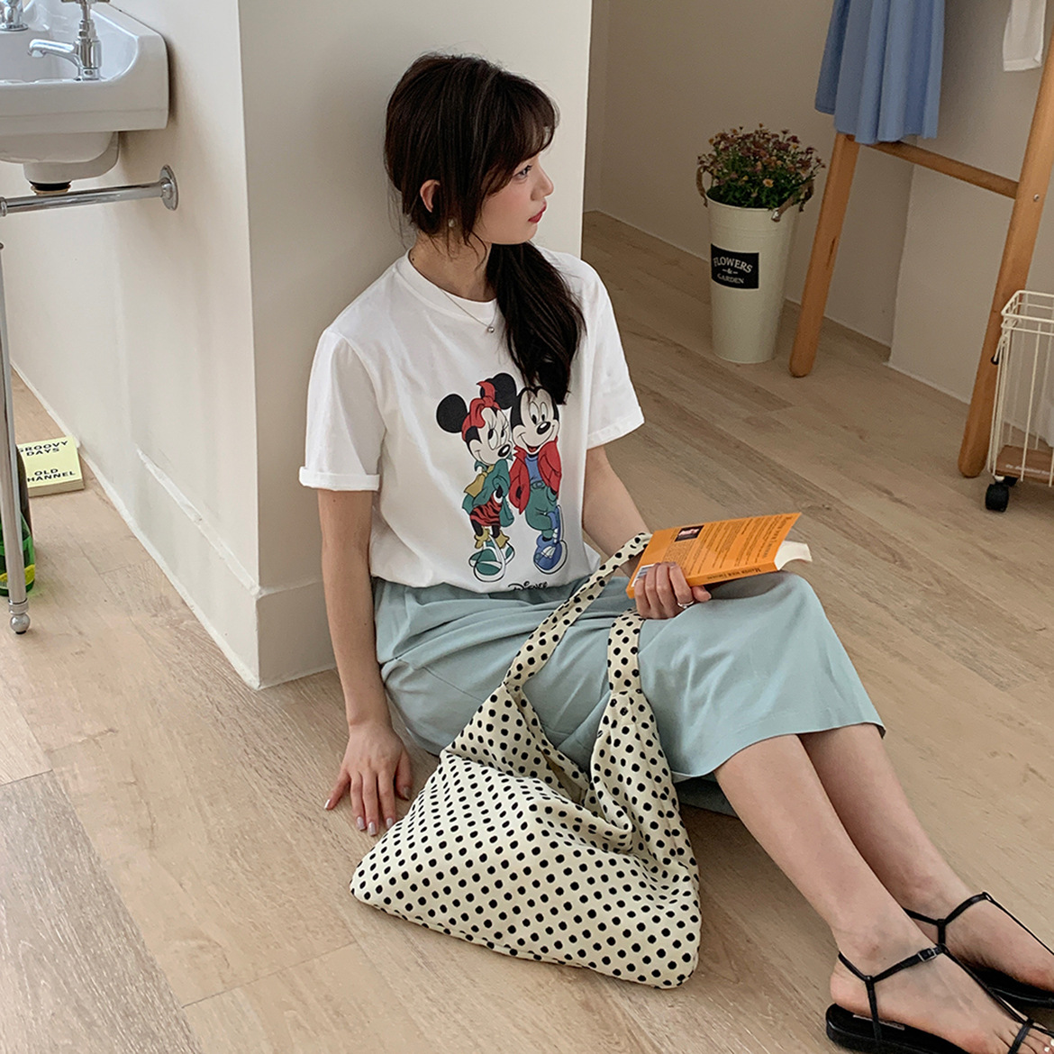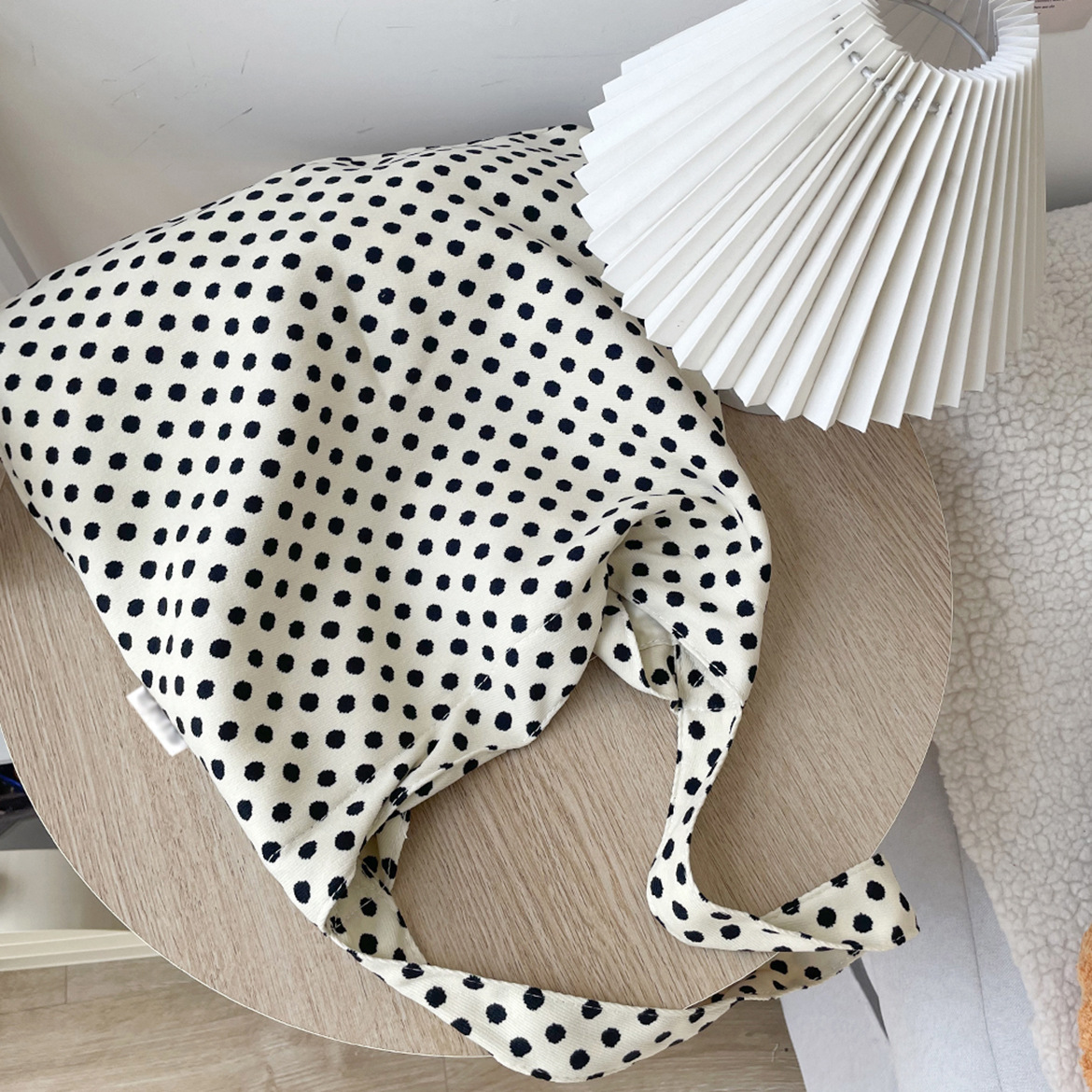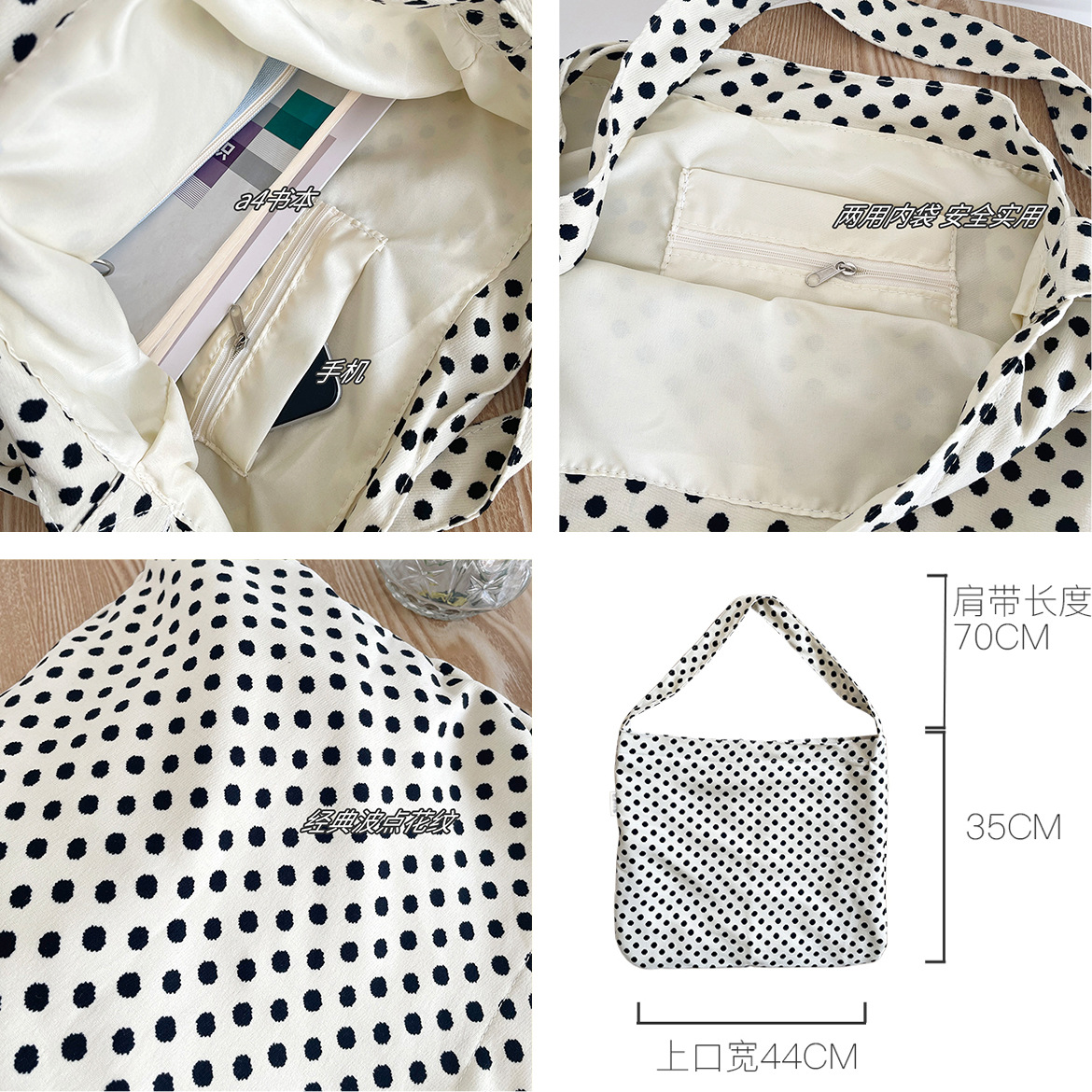 韩系ins复古波点帆布包大容量单肩斜挎包少女学生上课背包通勤包