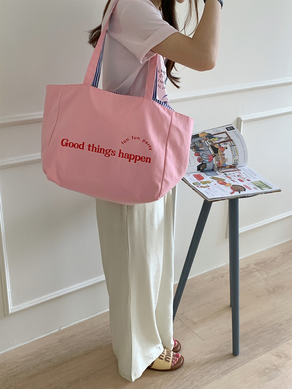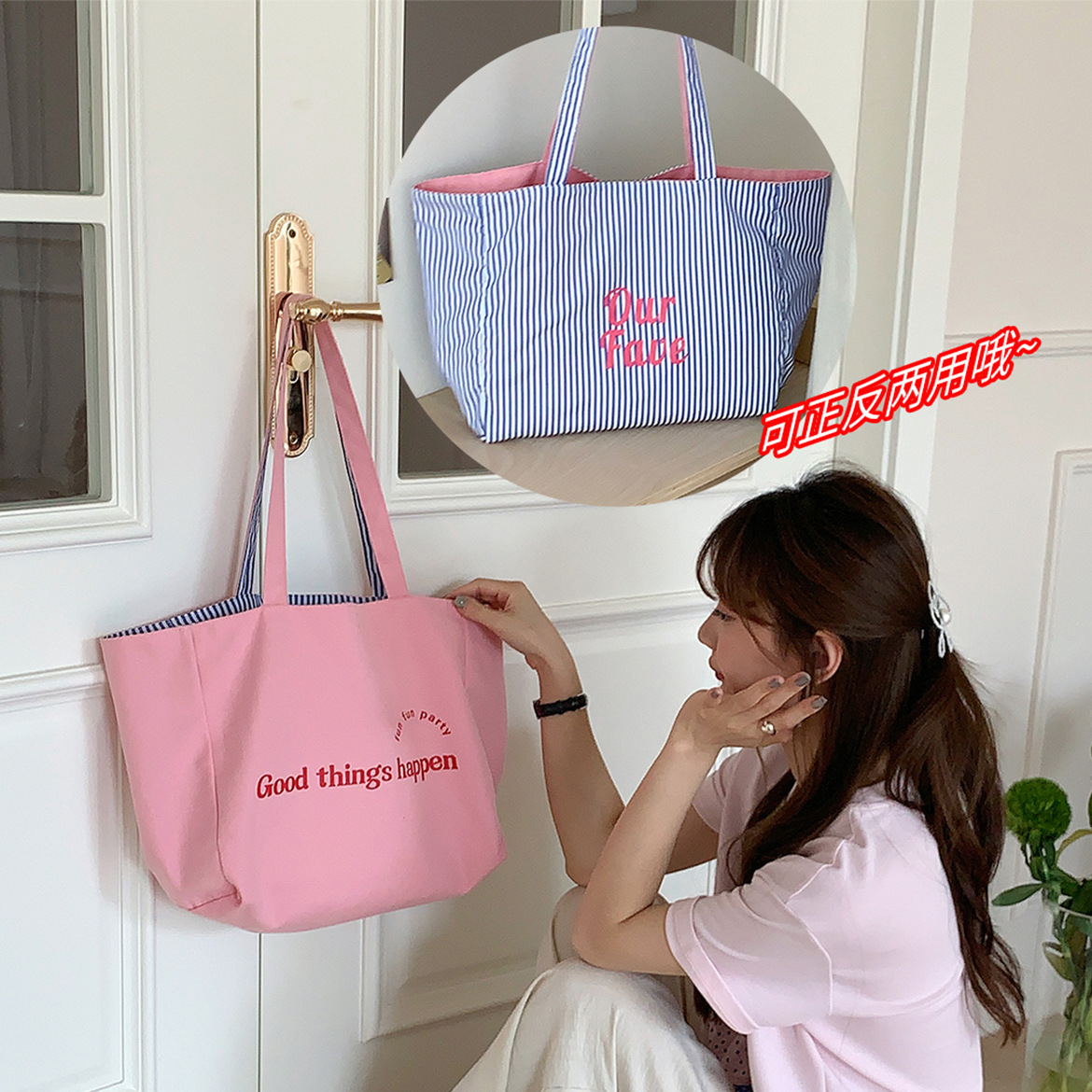 Our正反两用帆布袋-粉色