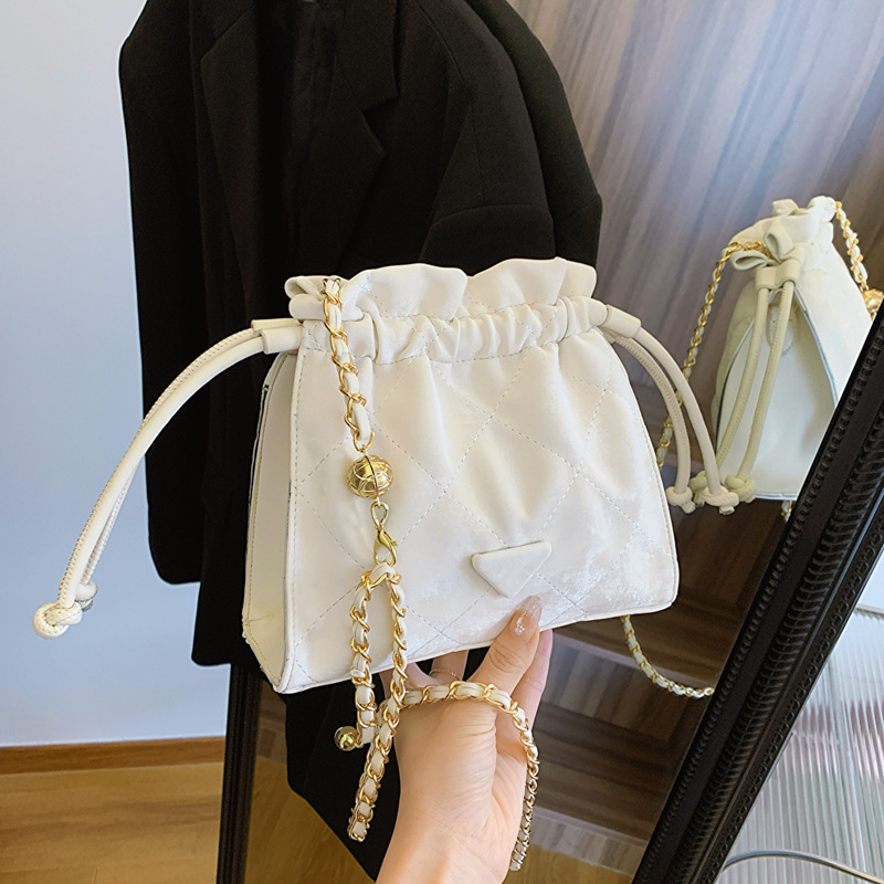 单肩包新中式小众褶皱质感云朵包国风串珠链条简约斜挎包包女