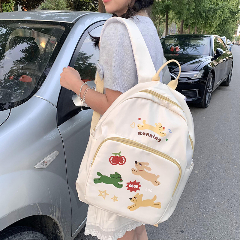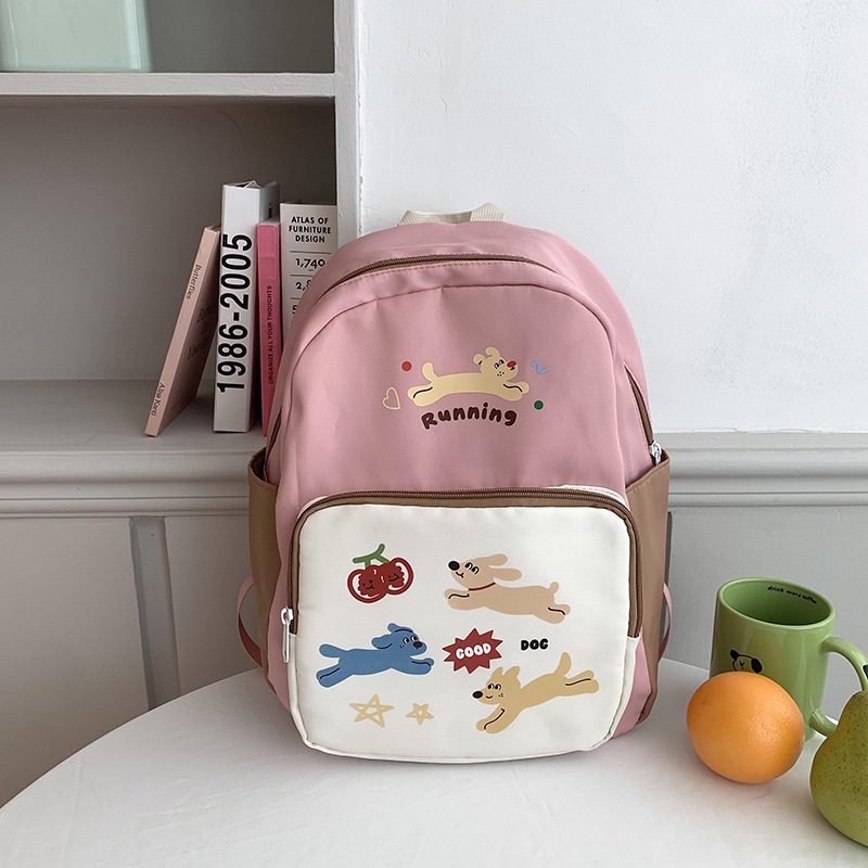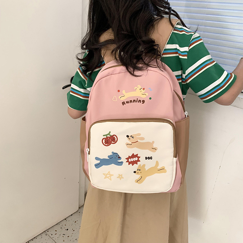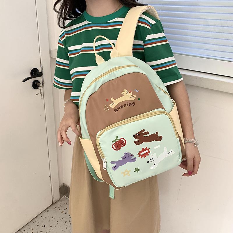 韩版可爱ins风拼色卡通动物双肩包女初高中学生书包电脑旅行背包