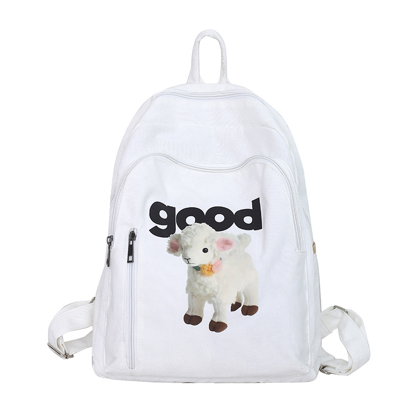 新款千禧童趣小绵羊印花书包日系动漫学院风可爱少女帆布双肩包