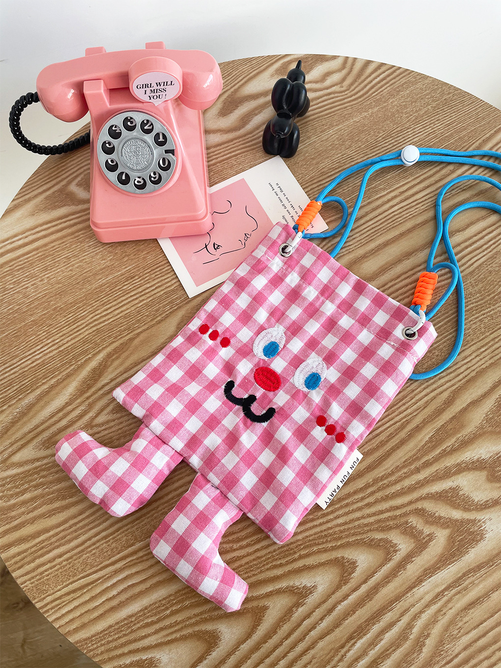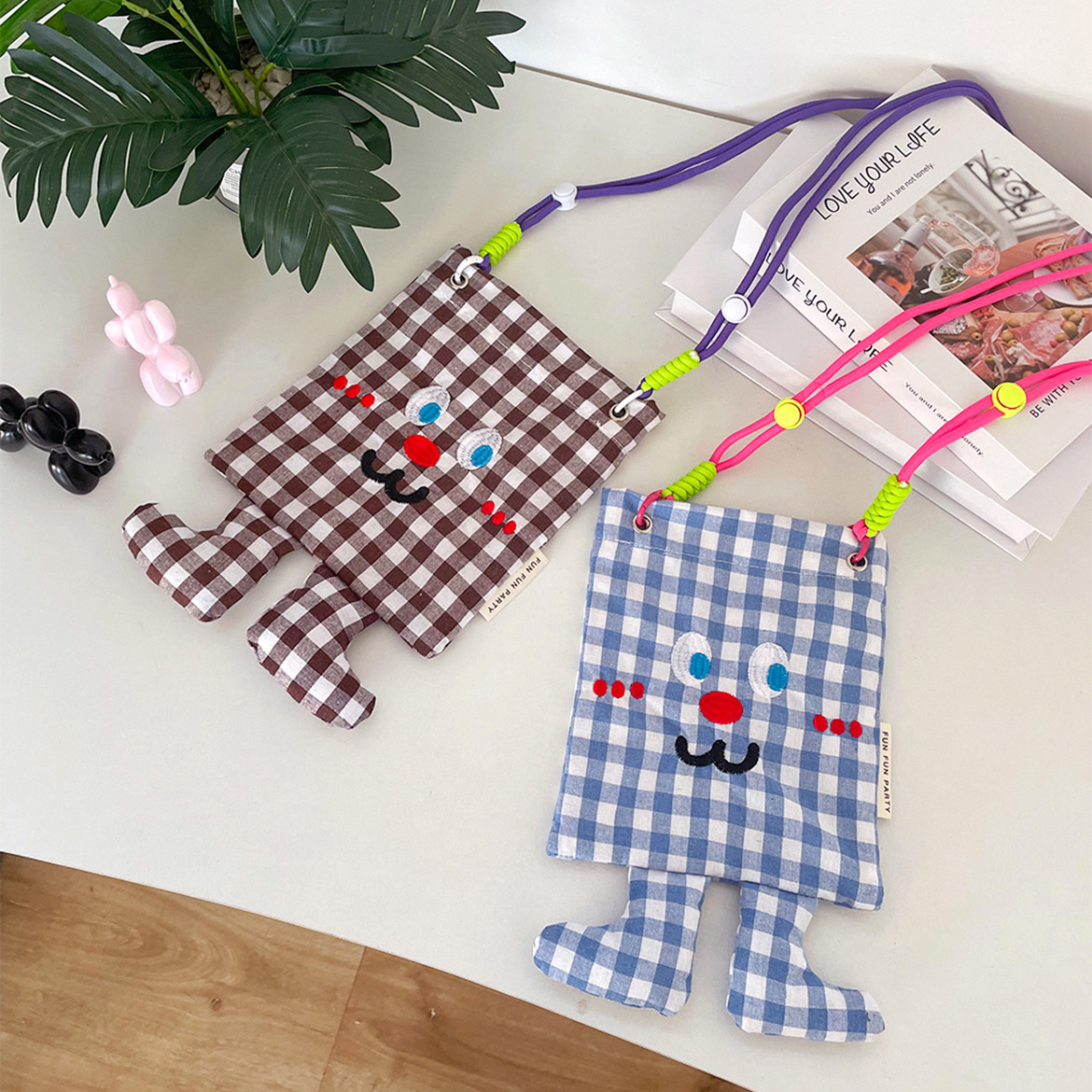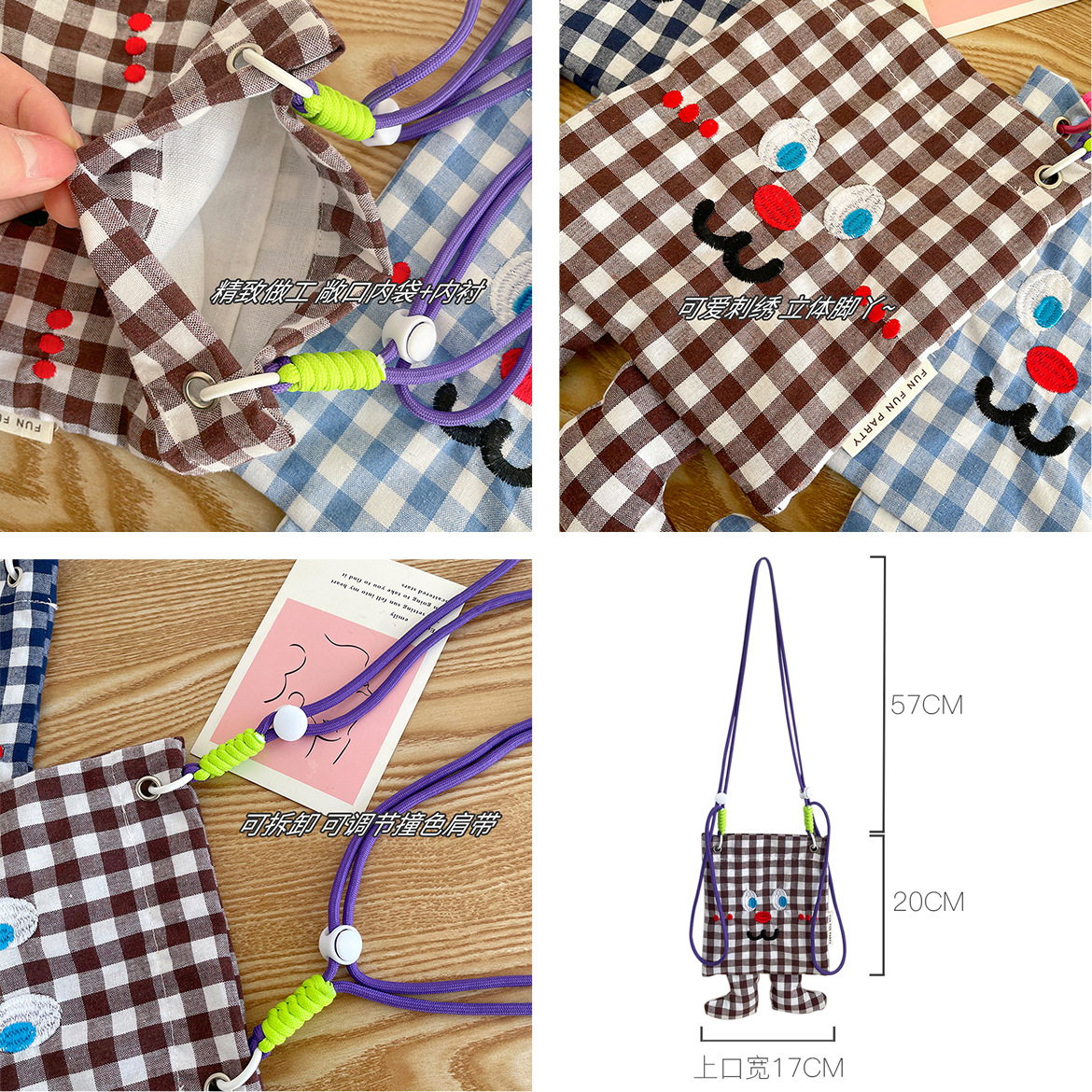 春季新款手机包撞色格子包可调节单肩斜挎收纳包可爱刺绣小包