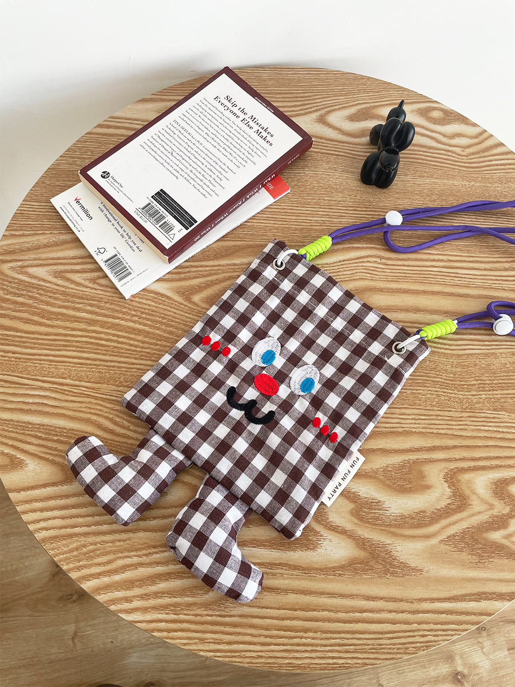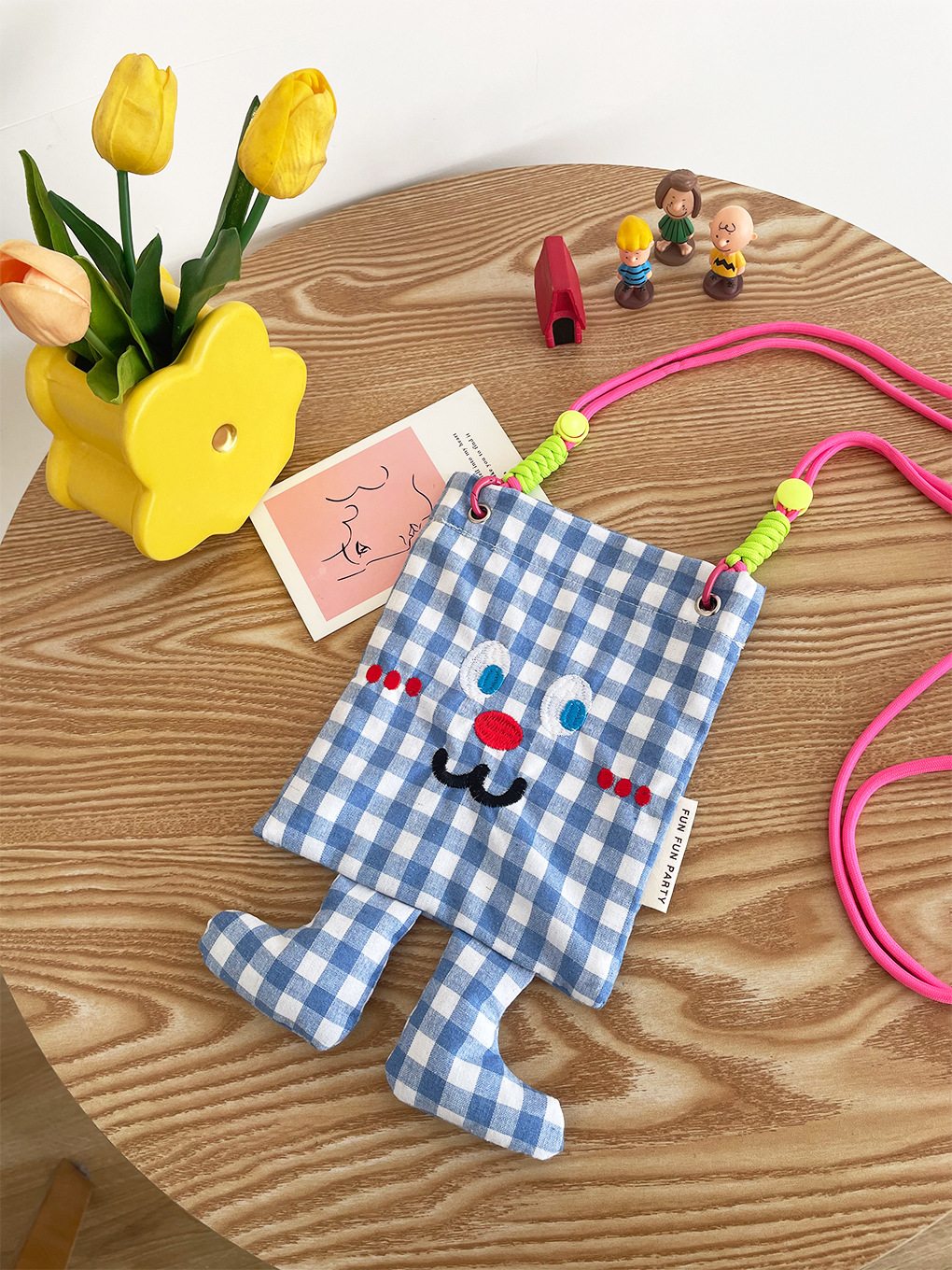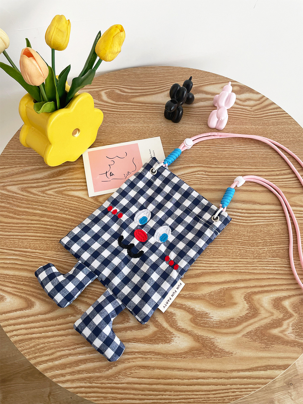 春季新款手机包撞色格子包可调节单肩斜挎收纳包可爱刺绣小包