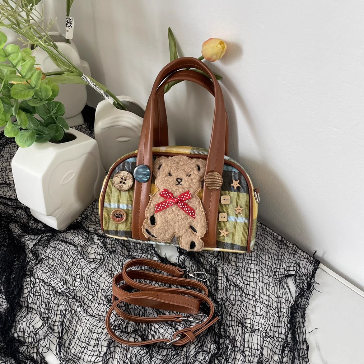 原创小熊可爱包包五角星手提斜挎包小众女生礼物y2k学生秋冬小包