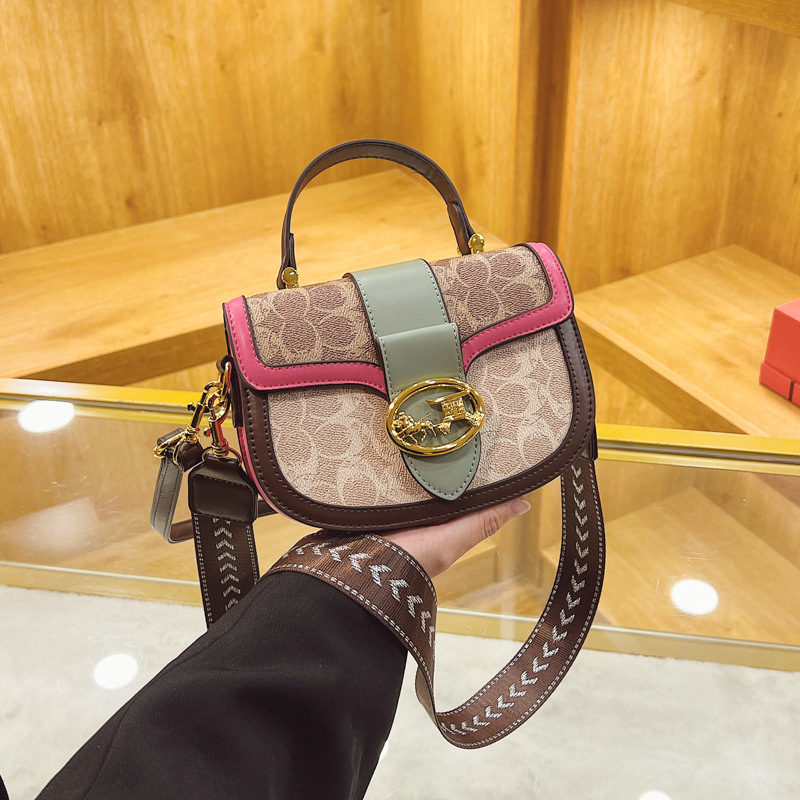 单肩包欧美复古宽肩带百搭拼接马鞍包简约休闲时尚通勤包包女