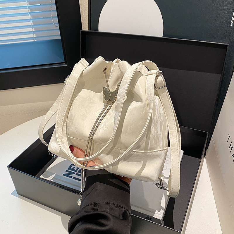 新款蝴蝶链条简约清新气质休闲水桶流行潮流单肩时尚双肩女包