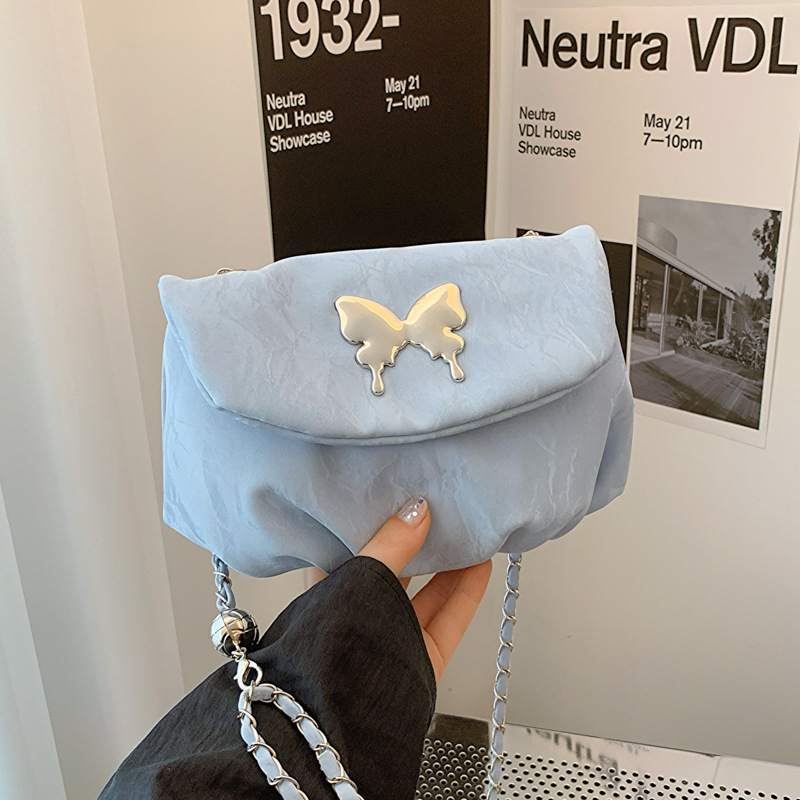 蝴蝶时尚韩版链条单肩包包女新款唯美ins斜挎包气质马鞍包女