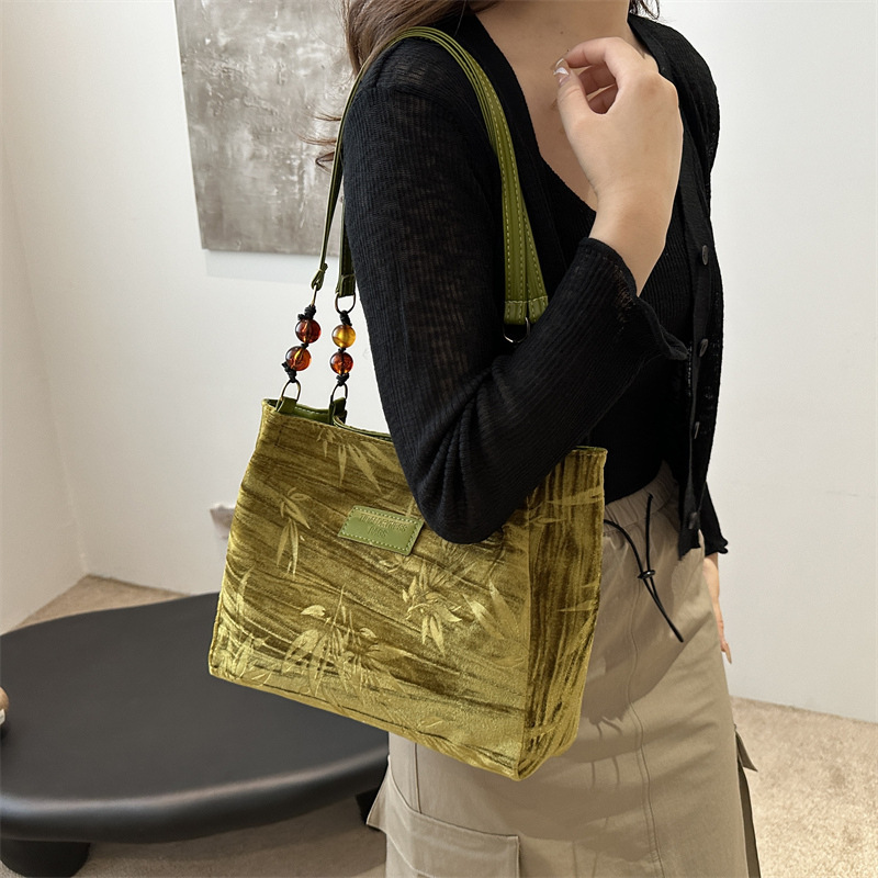 串珠手提新中式包包女式新款潮原创小众丝绒腋下包百搭单肩包