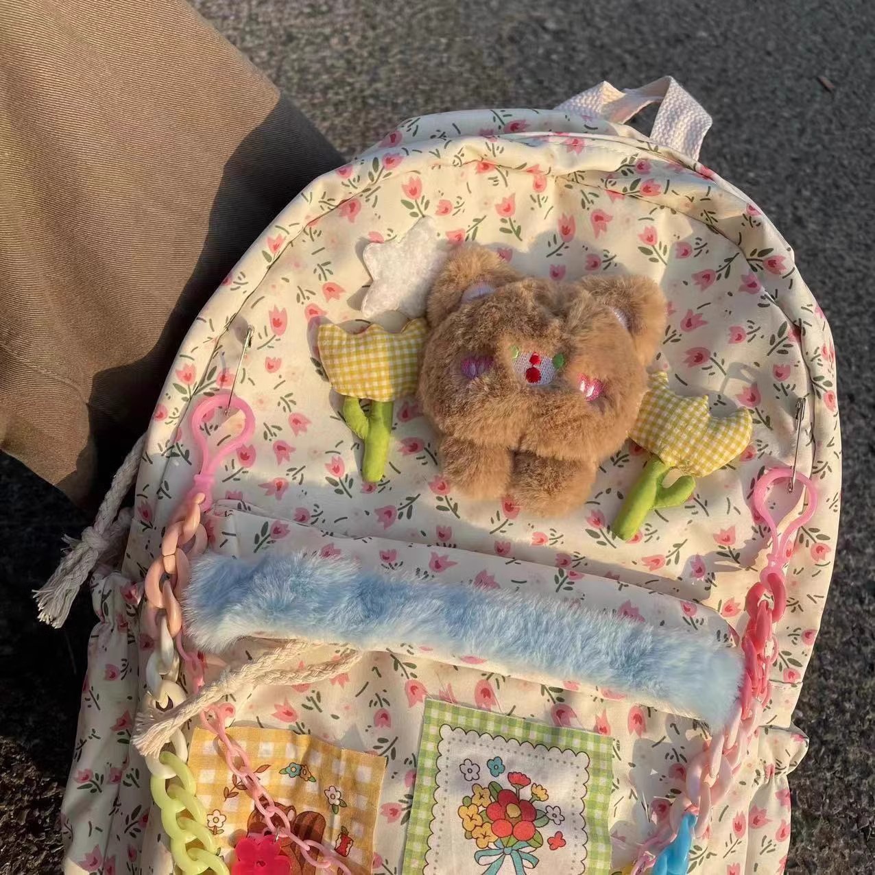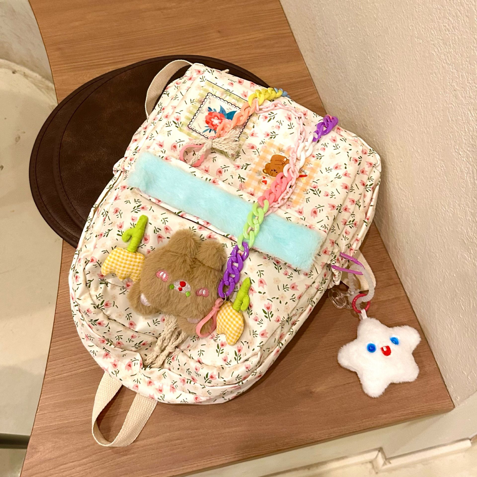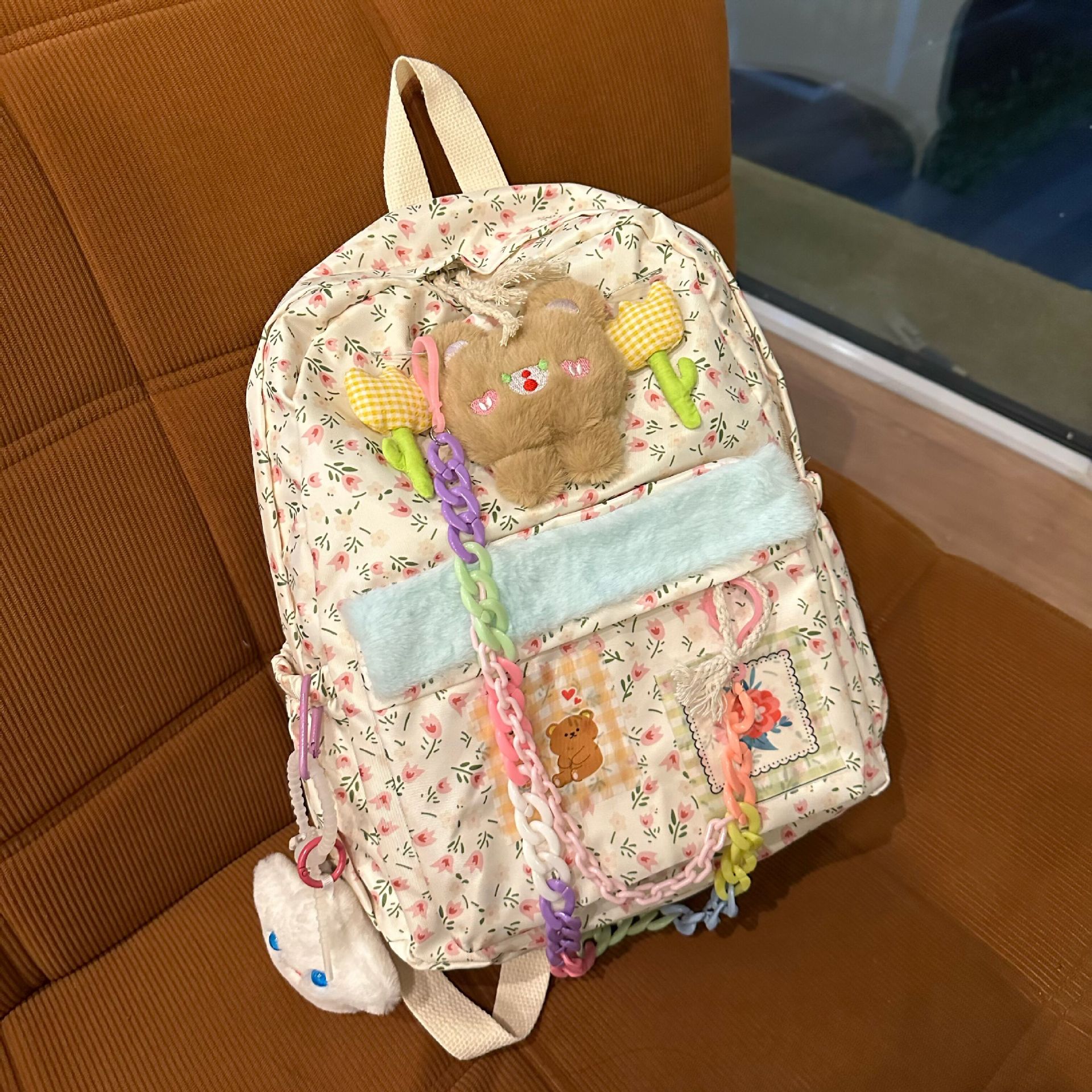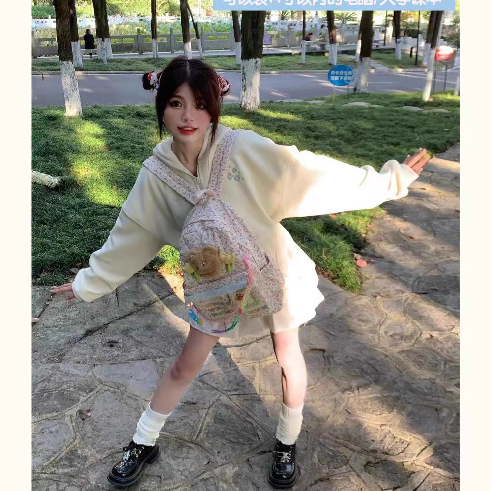 软萌小熊碎花书包可爱少女二次元校园大容量初高中学生双肩包上课
