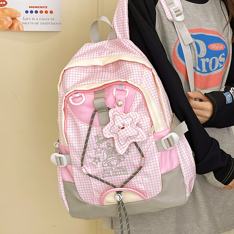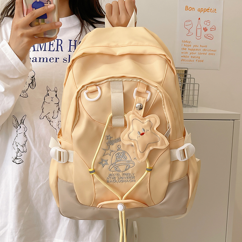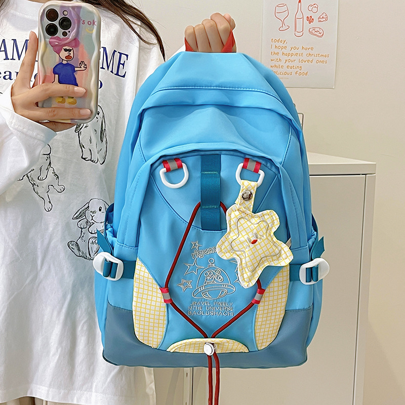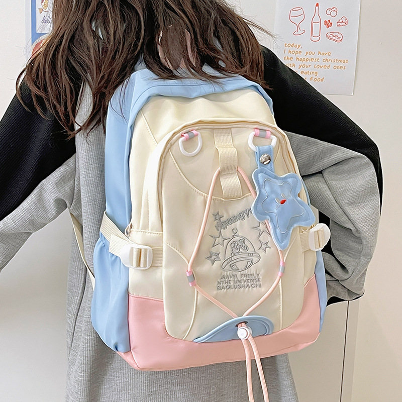 马卡龙撞色设计可爱大学生双肩包女新款初高中生书包轻便旅行背包