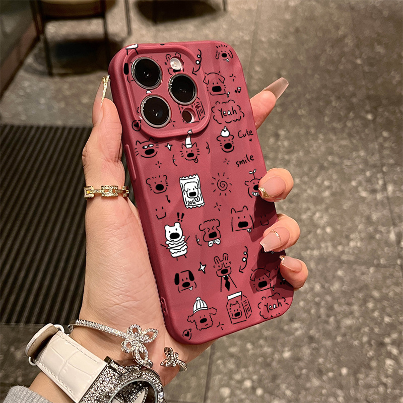 - 立体褶皱壳【酒红色】满屏小狗
