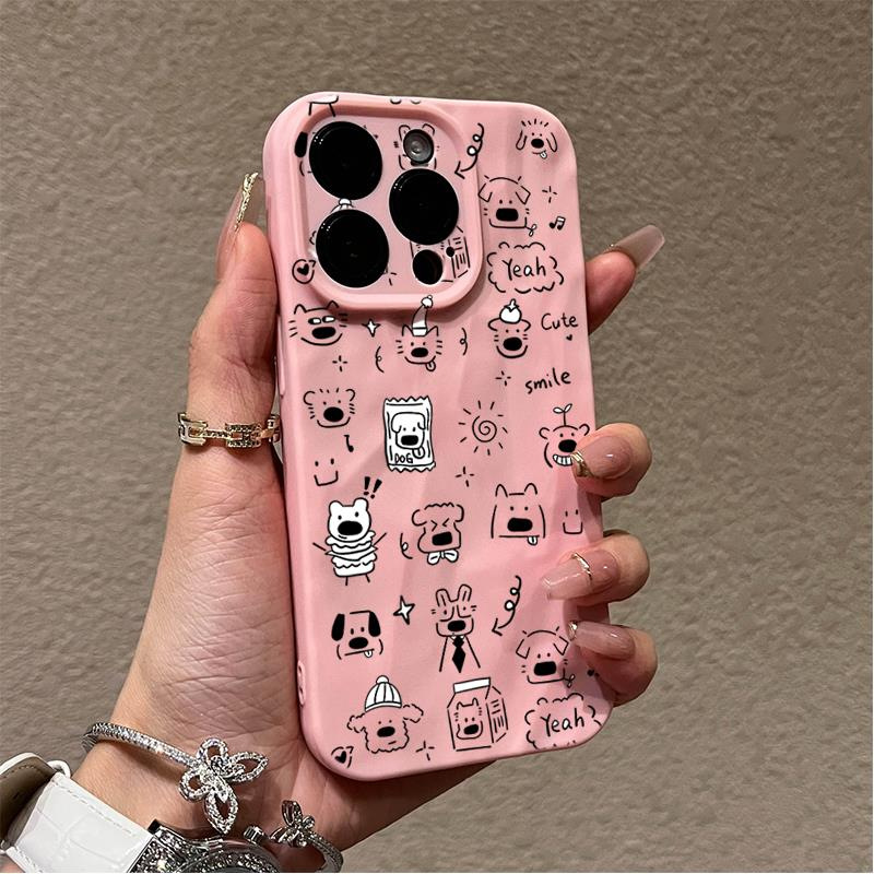 满屏小狗褶皱纹手机壳适用苹果15promax高级感iPhone14小众13/12