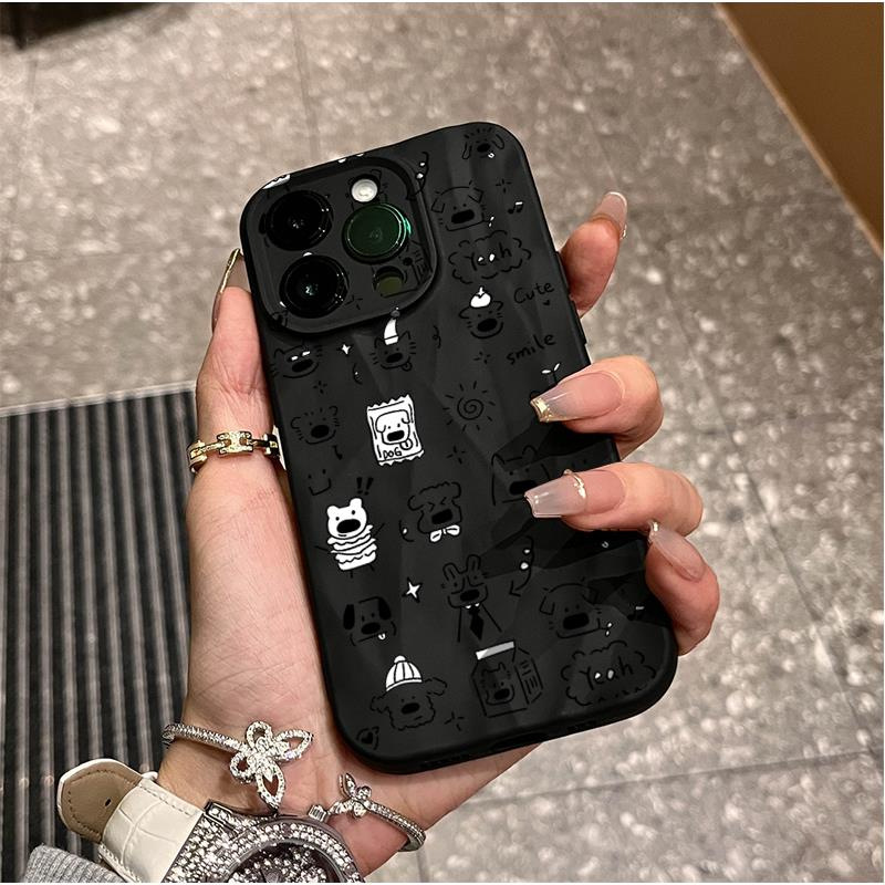 - 立体褶皱壳【黑色】满屏小狗
