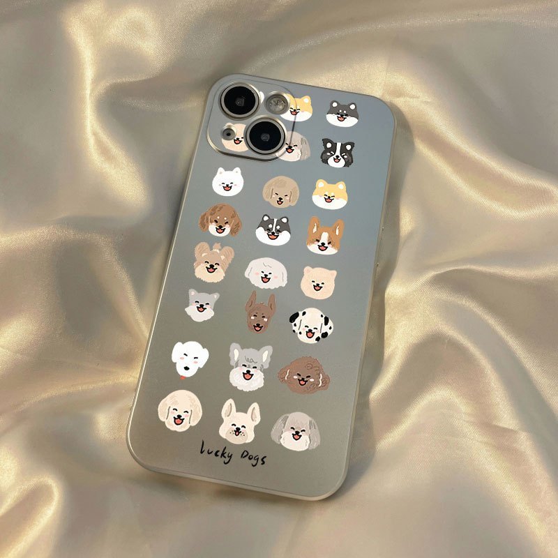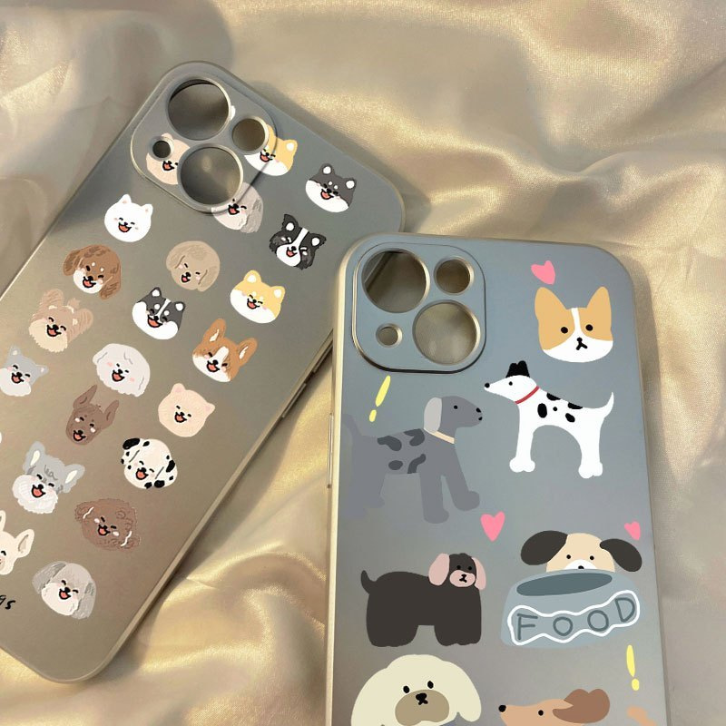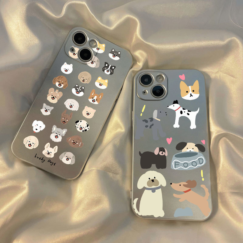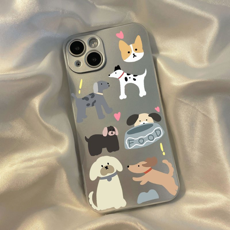卡通小狗手机壳适用于苹果15promax金属银iPhone14小众13软壳12/1
