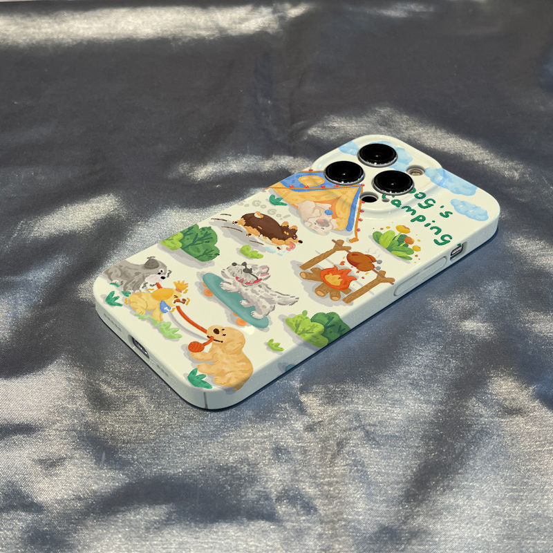 露营小狗菲林手机壳适用于苹果15promax小众iPhone14高级感13硬壳