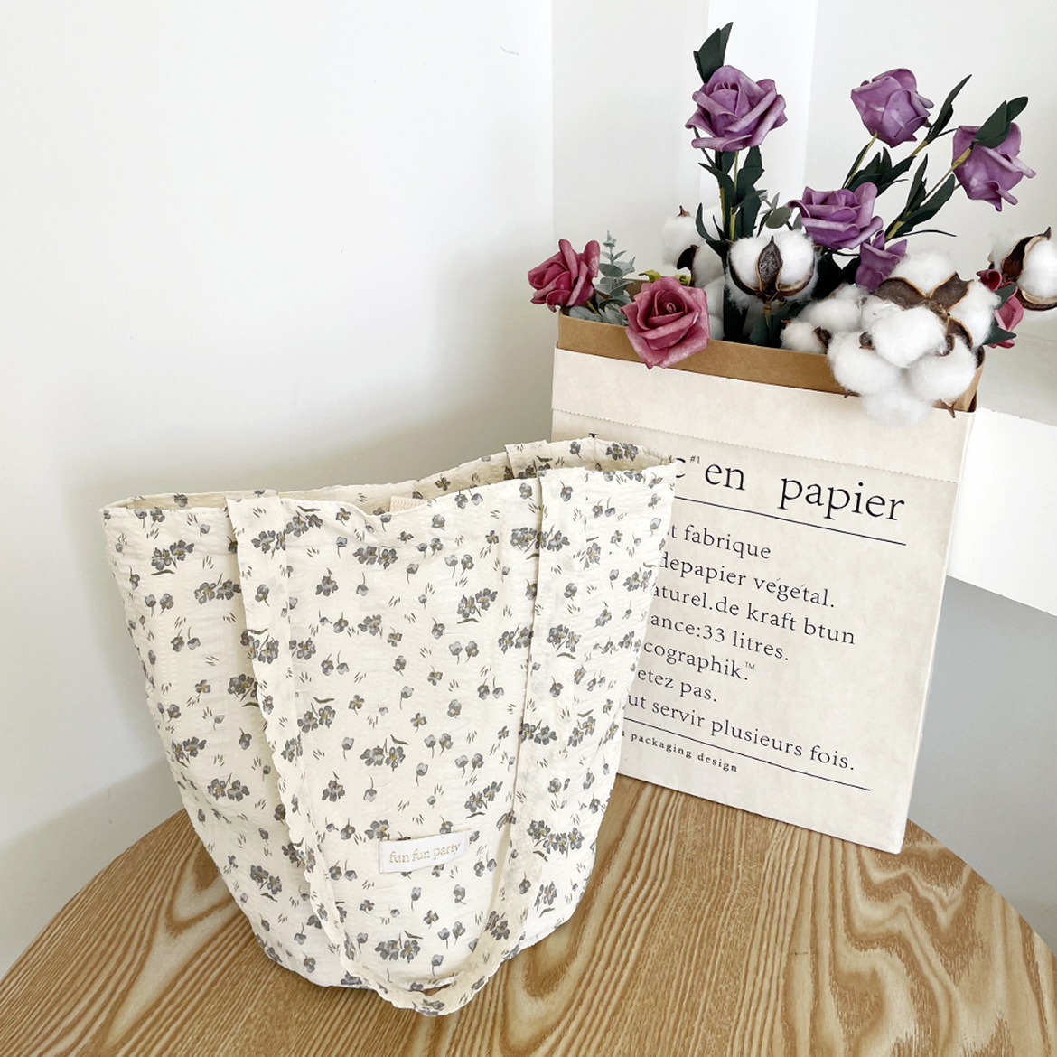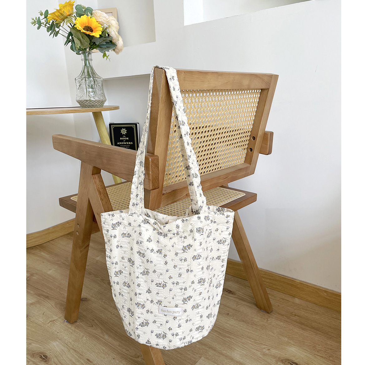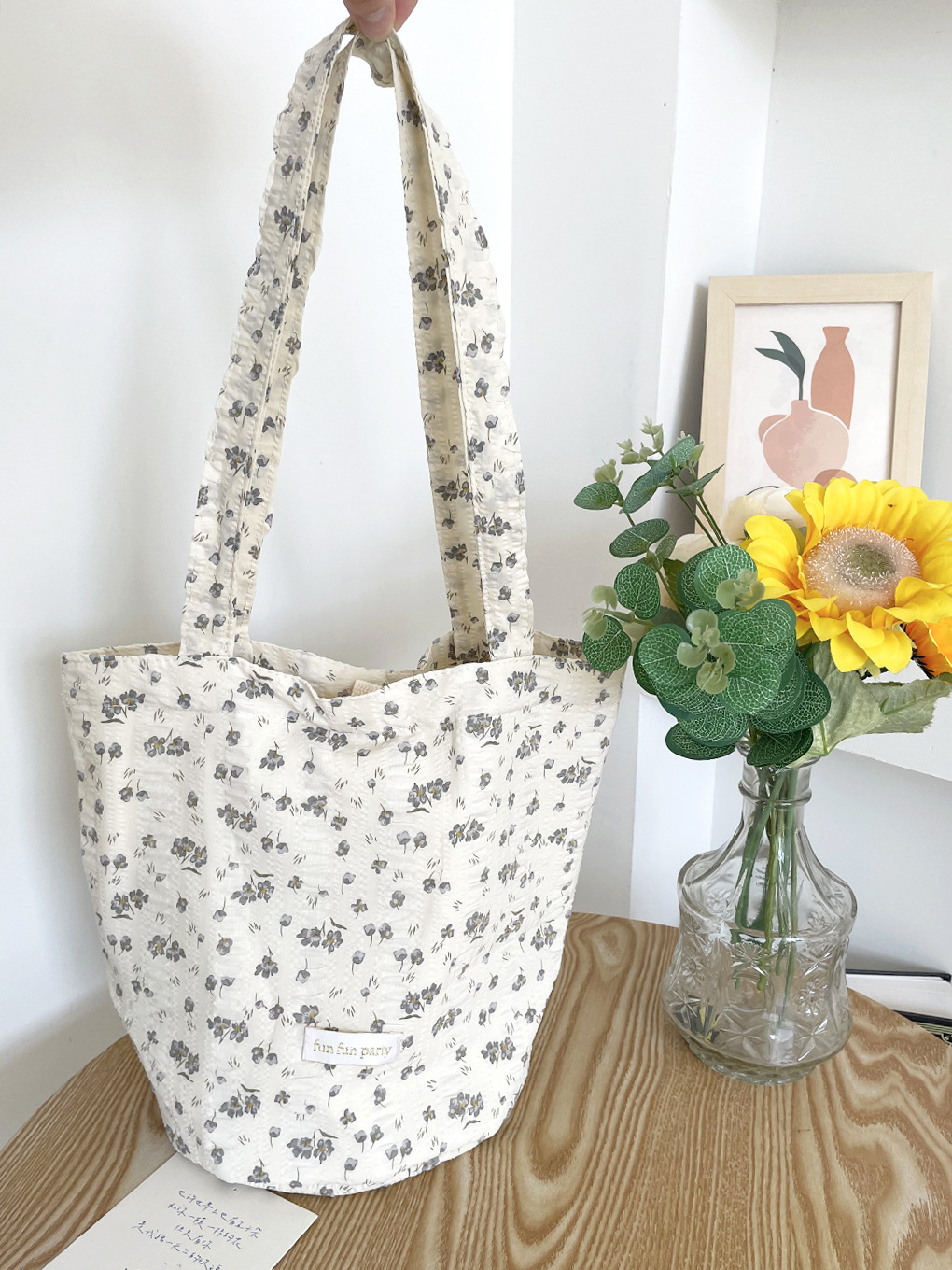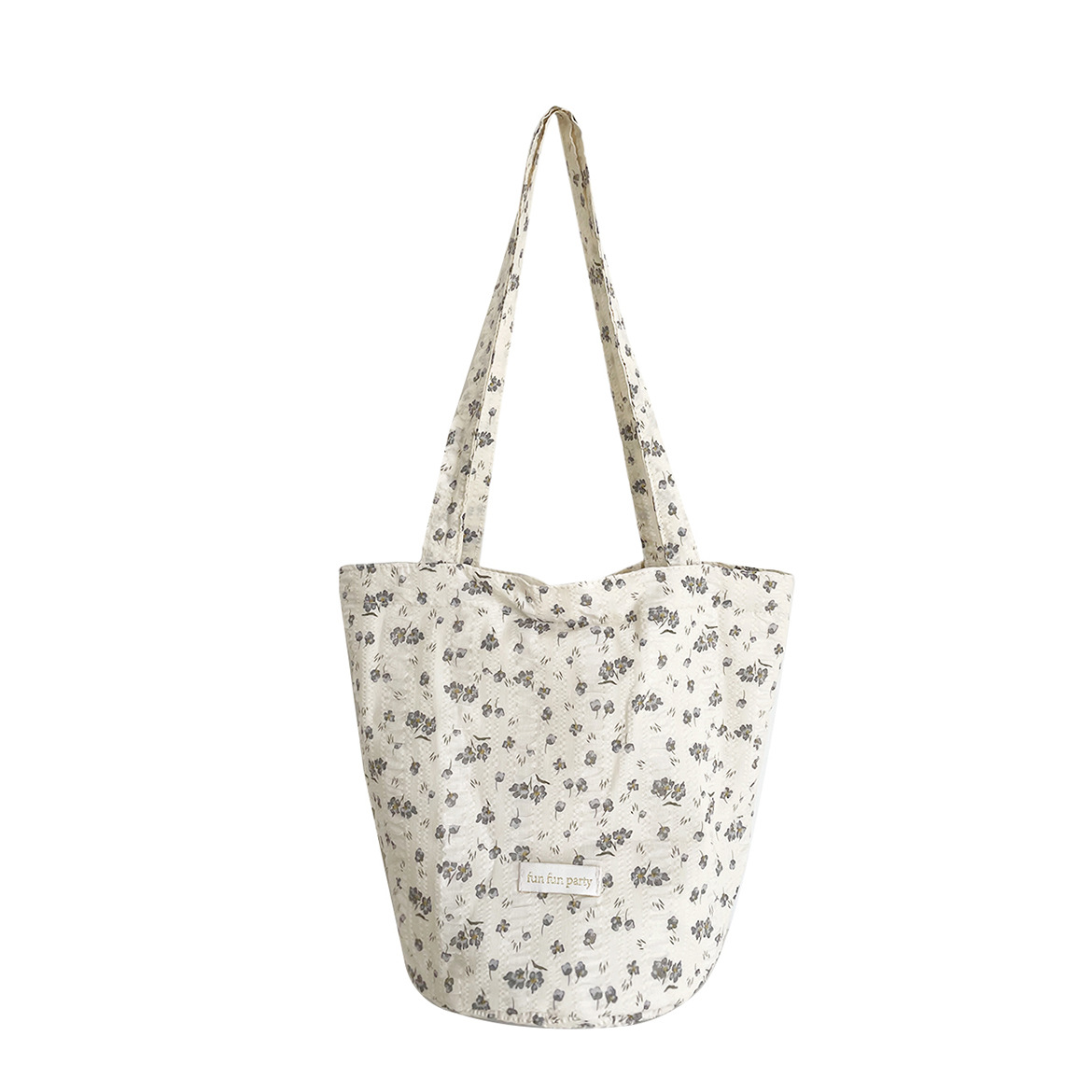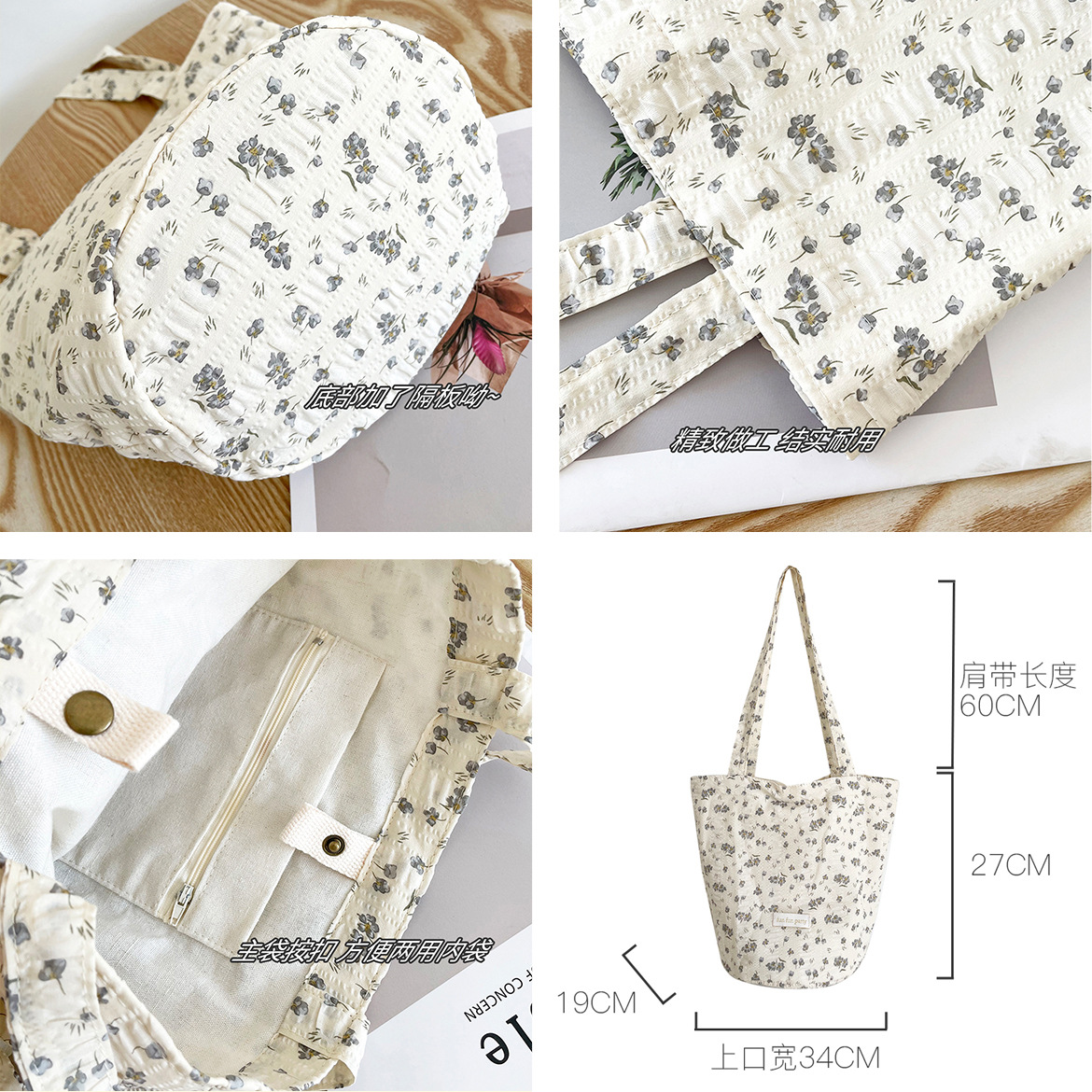 春夏新款碎花水桶包韩系托特包大容量单肩帆布包清新百搭学生布袋