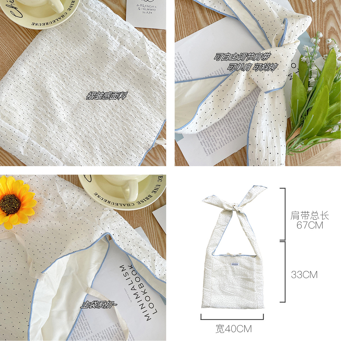 自制肌理感褶皱波点单肩斜挎包清新百搭帆布包女可调节系带布袋女
