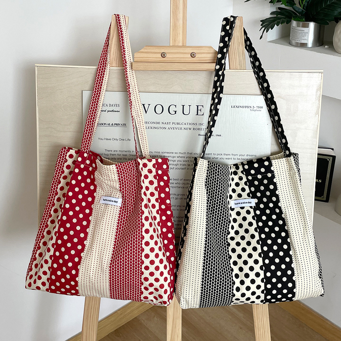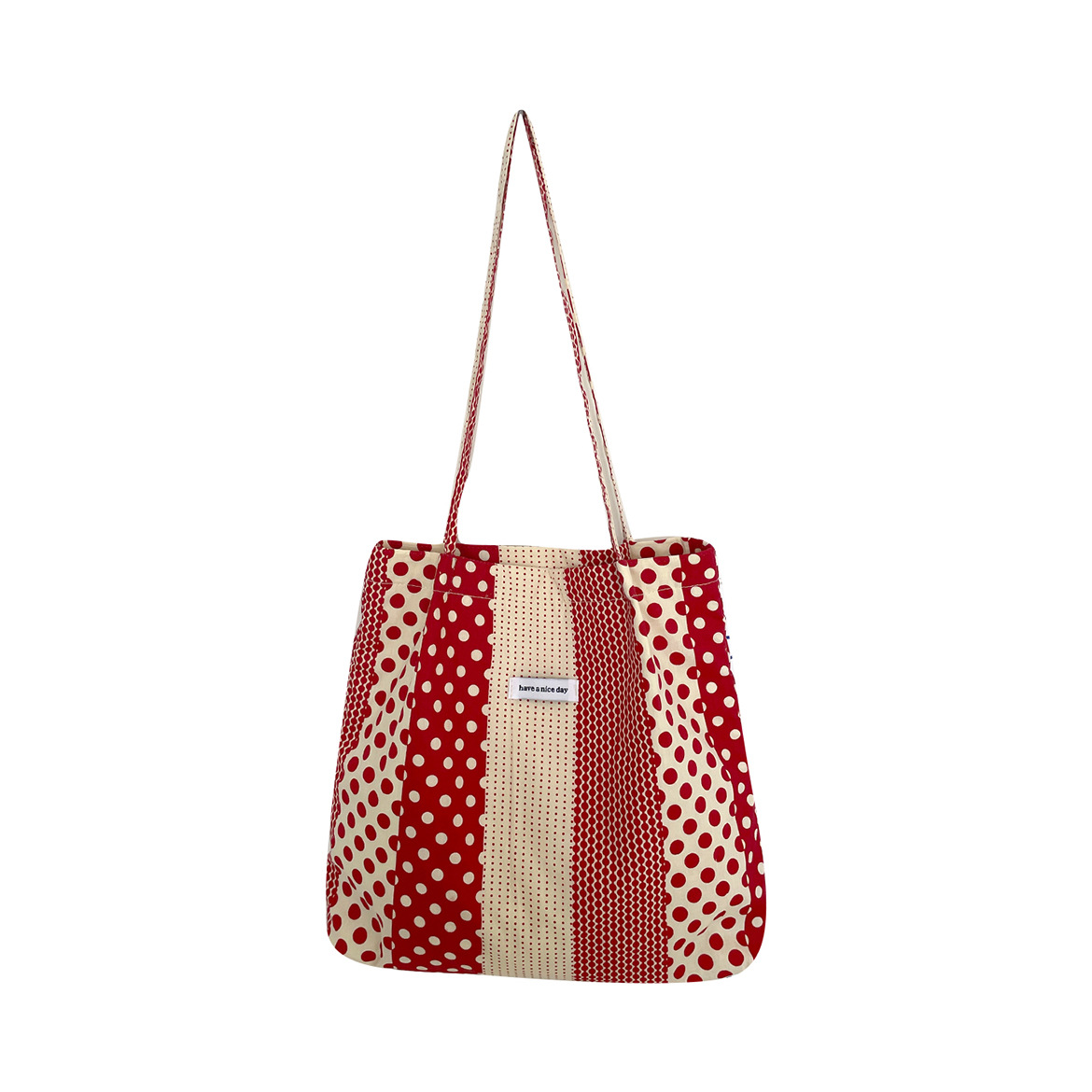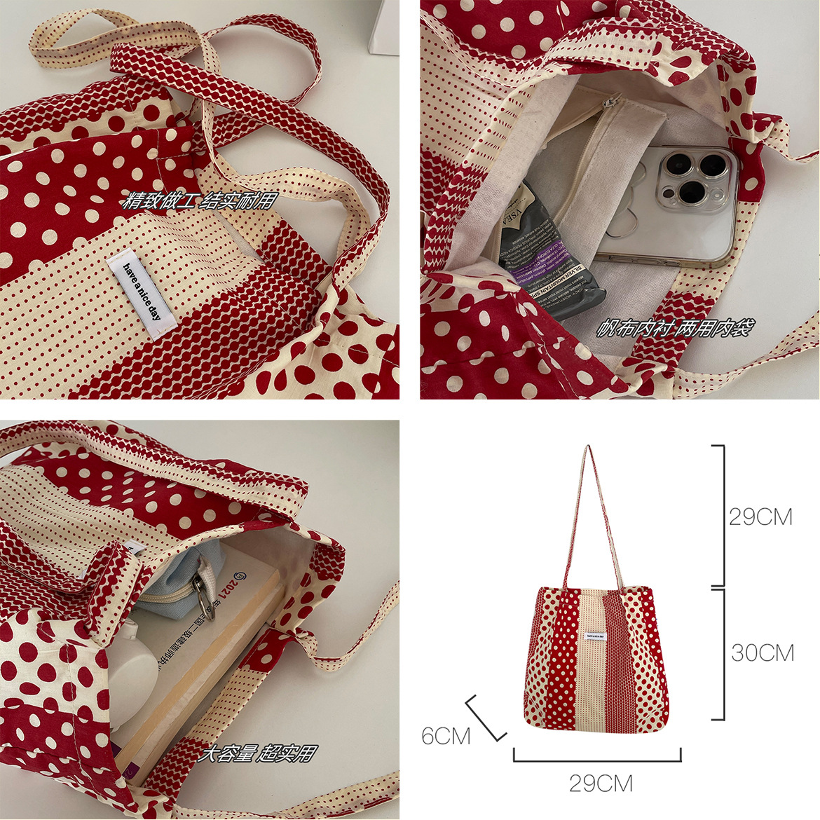 韩系布包春夏百搭小众可爱红色波点单肩包薄款轻便帆布包学生书包