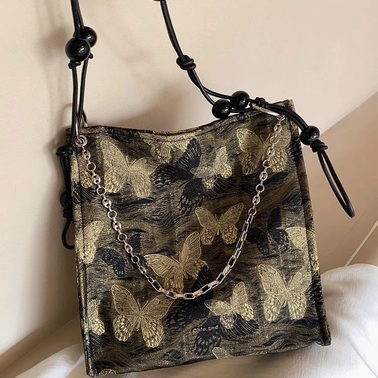 新中式黑金蝴蝶托特包包女新款大容量休闲单肩包