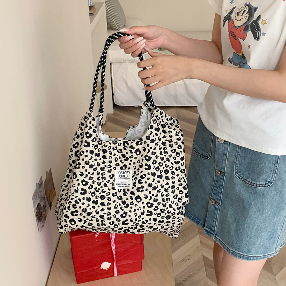 复古豹纹抽绳包大容量腋下包时尚通勤单肩包女旅游拍照百搭包包潮