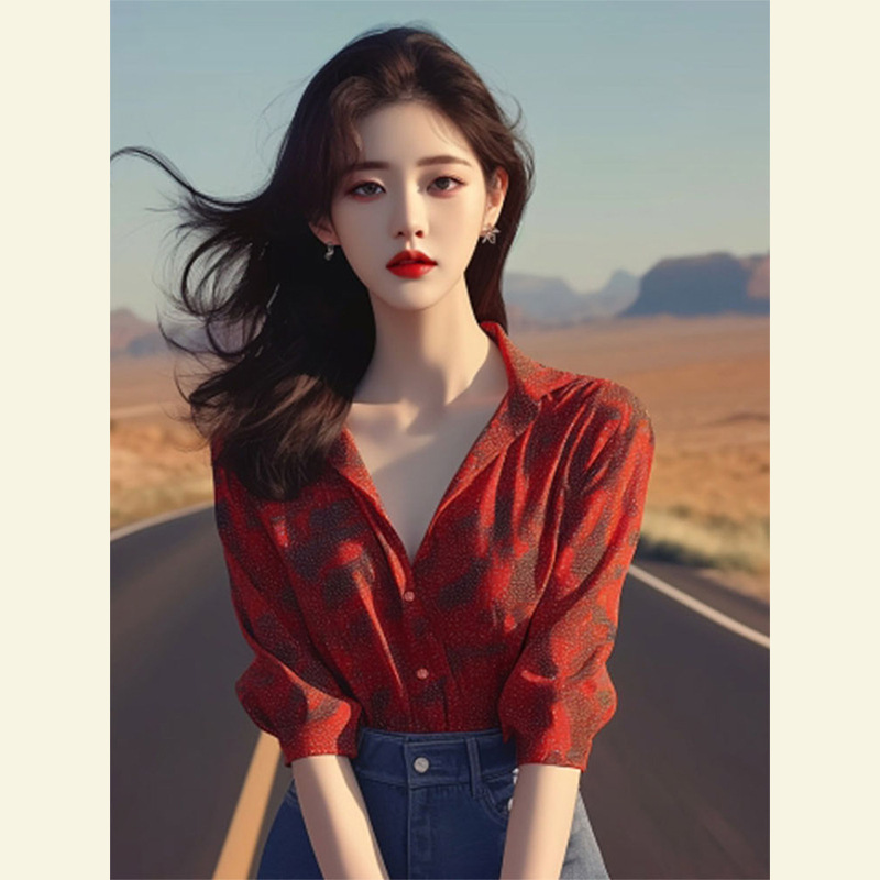今年流行漂亮洋气独特别致绝美上衣设计感小众红色衬衫新款女