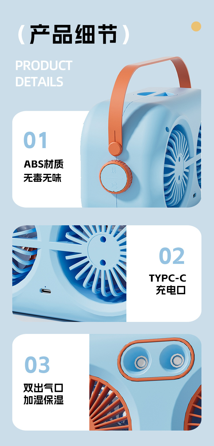 双叶喷雾风扇usb桌面空调扇冷风机水冷喷雾电风扇降温加湿小风扇