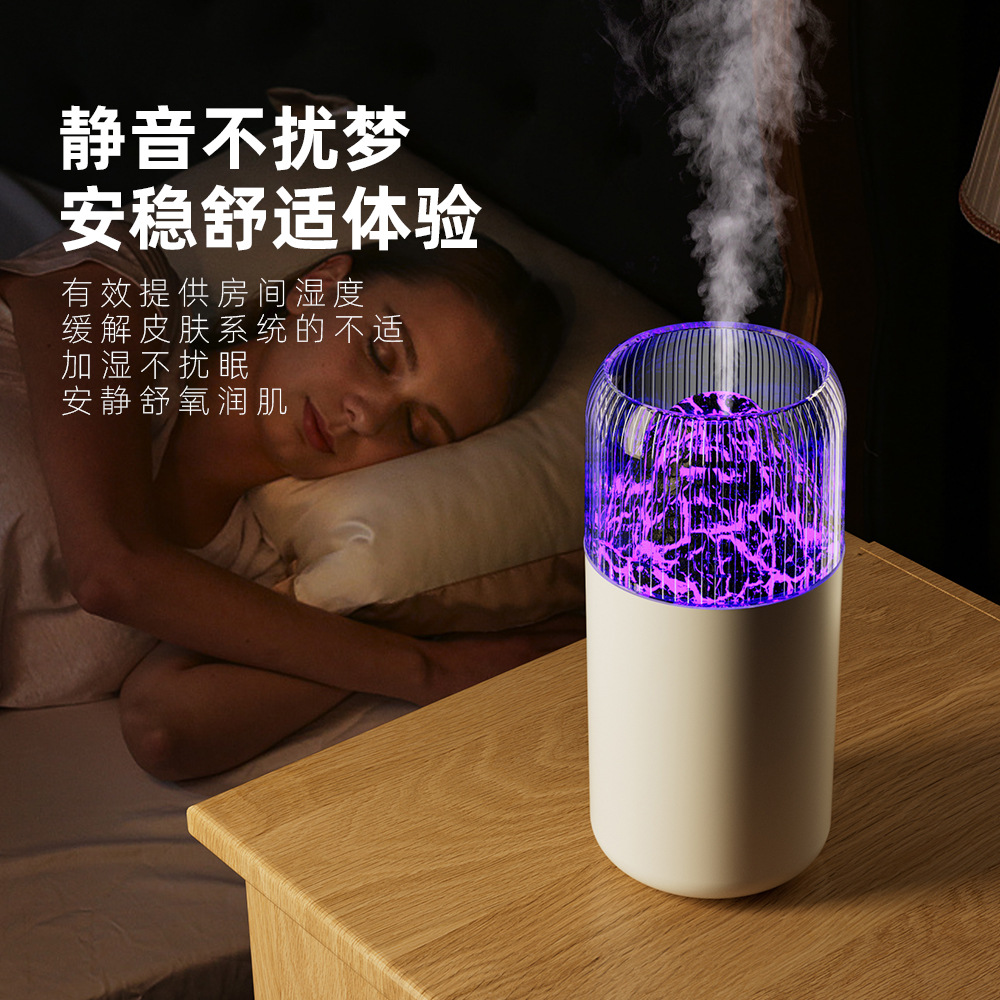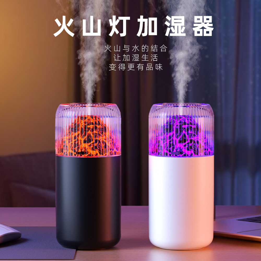 新款星球火山加湿器家用办公雾化器卧室七彩氛围灯火焰灯加湿器