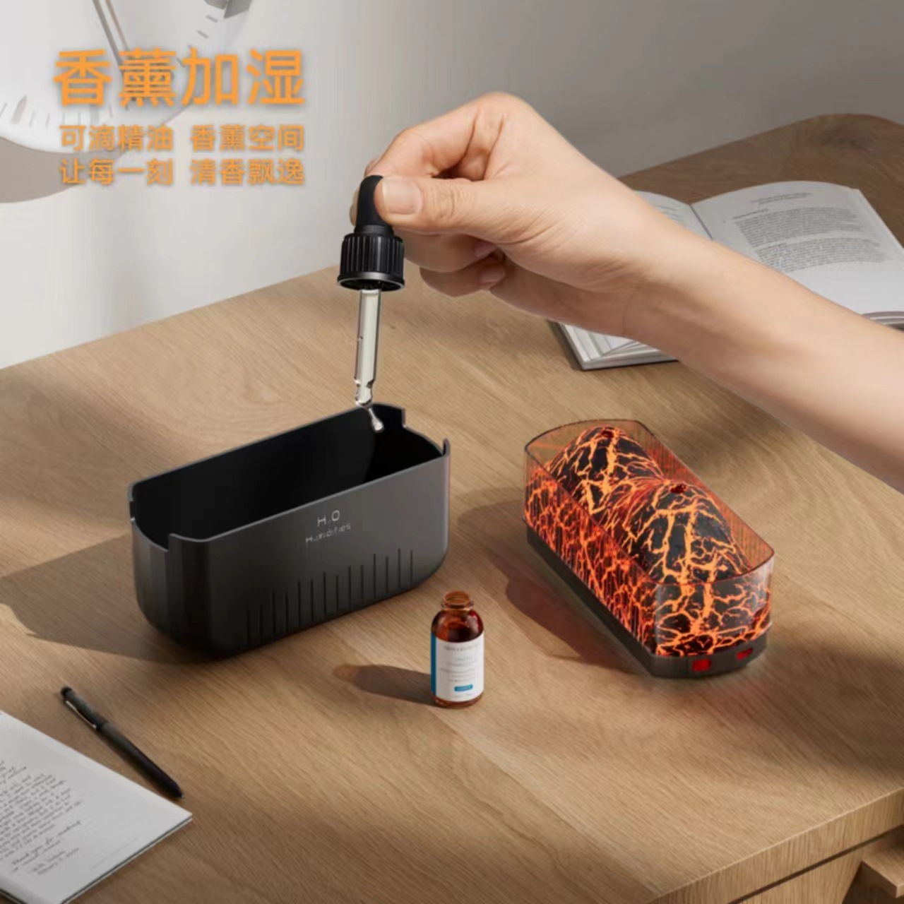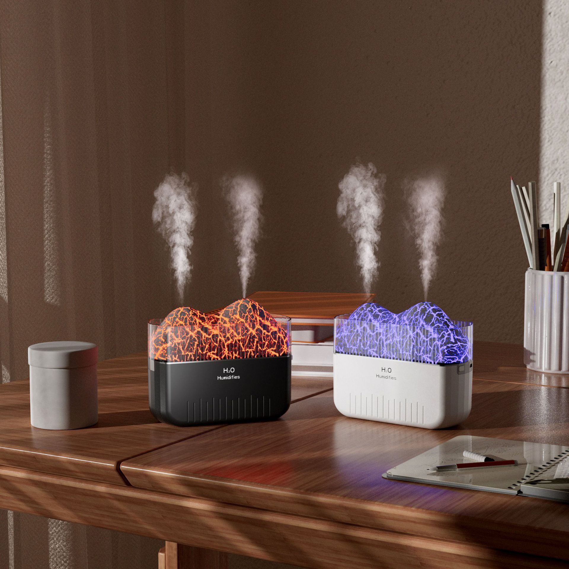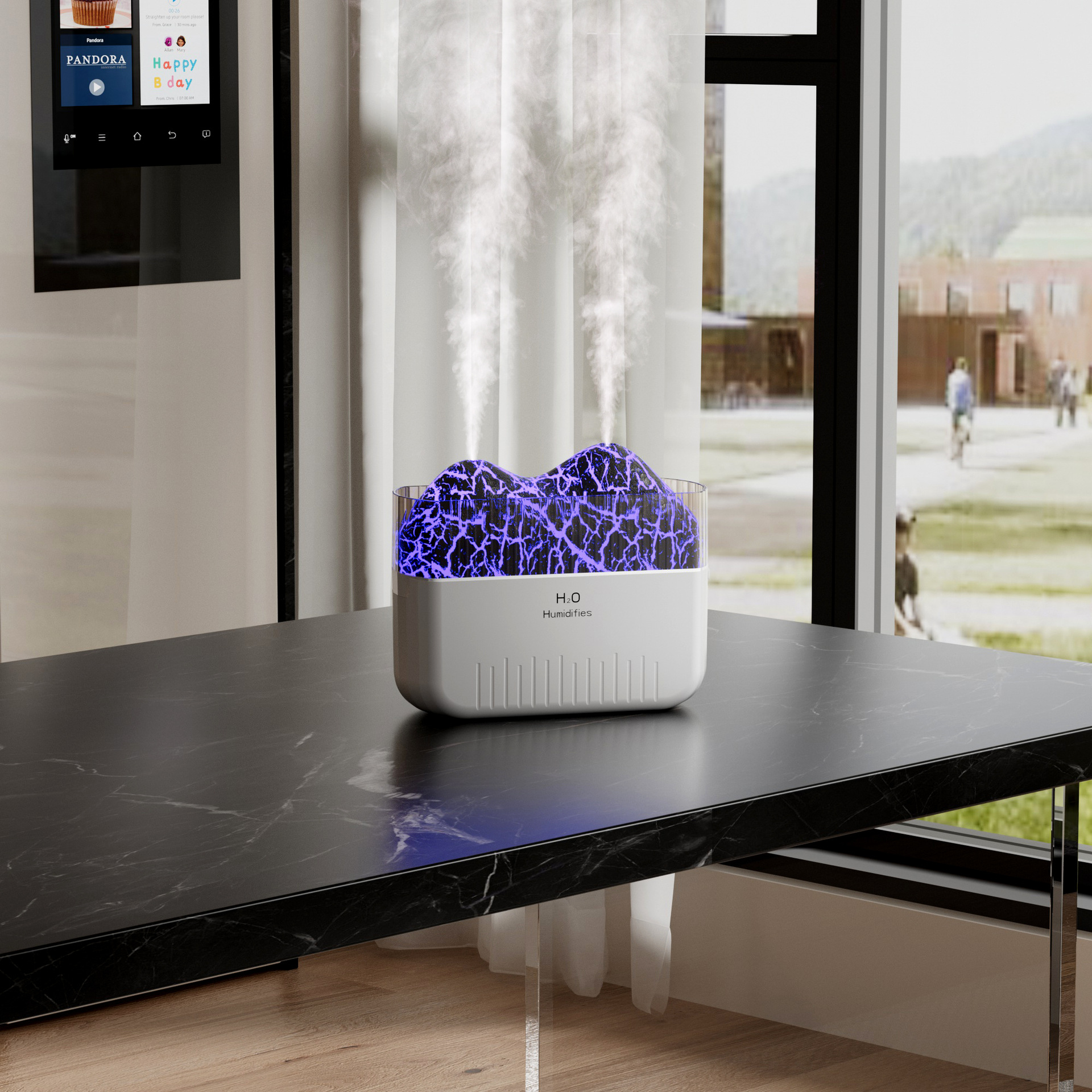 创意大容量双喷火山加湿器家用氛围灯七彩渐变火山喷雾雾化器