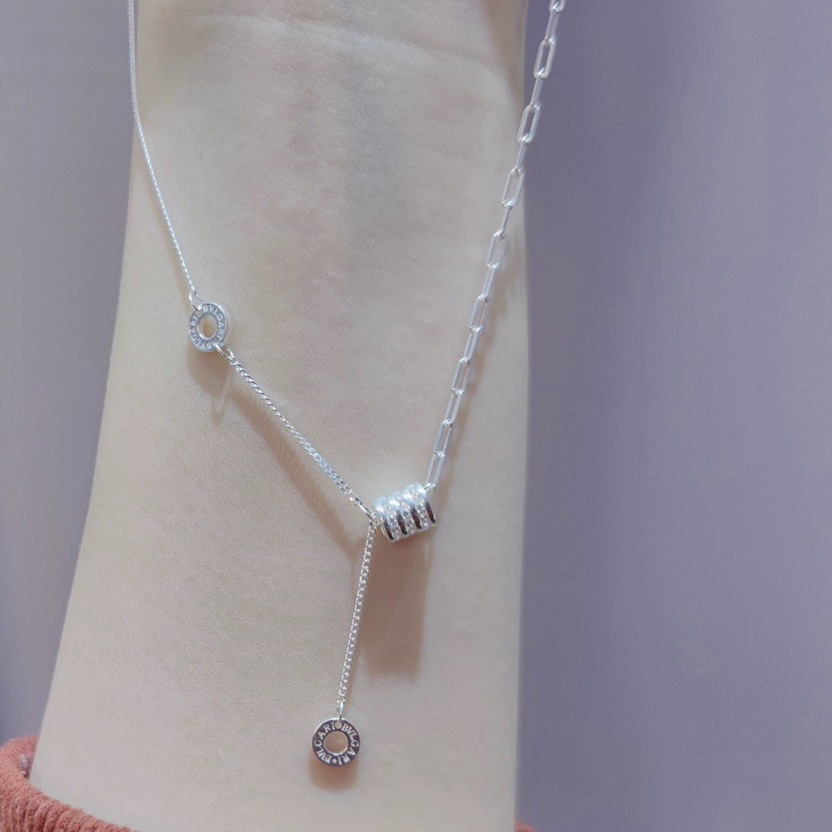 s990纯银小蛮腰流苏项链女轻奢小众设计三排钻转运圆筒流苏锁骨链