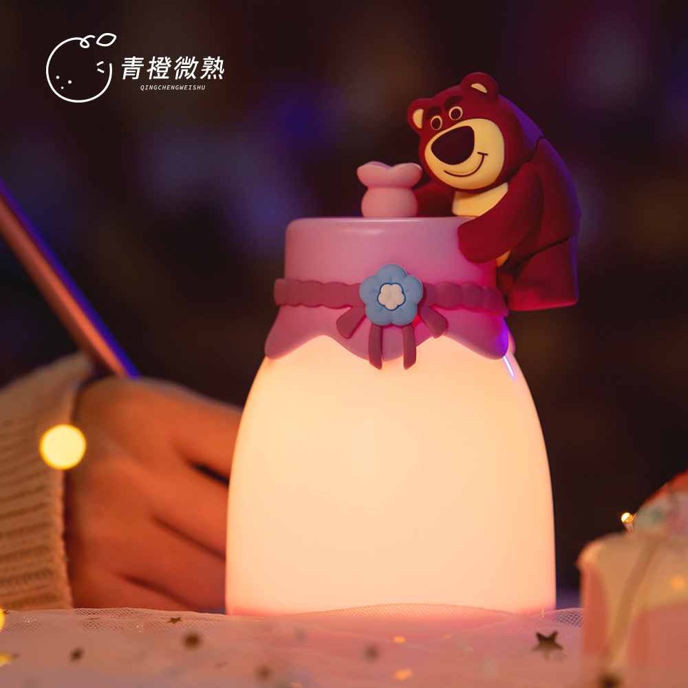 新款草莓熊奶瓶香薰灯伴睡暖光灯卧室床头小夜灯摆件创意礼物女生