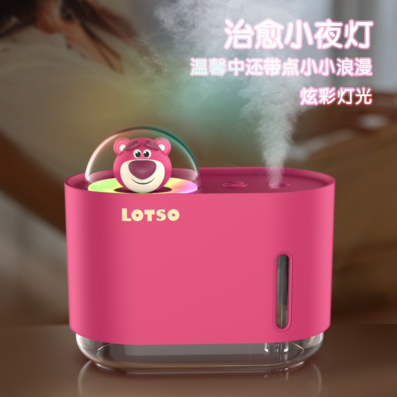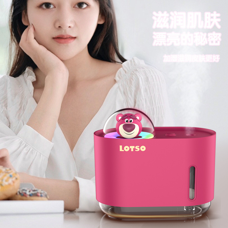 草莓熊桌面加湿器USB迷你便携补水空气净化器氛围灯加湿器