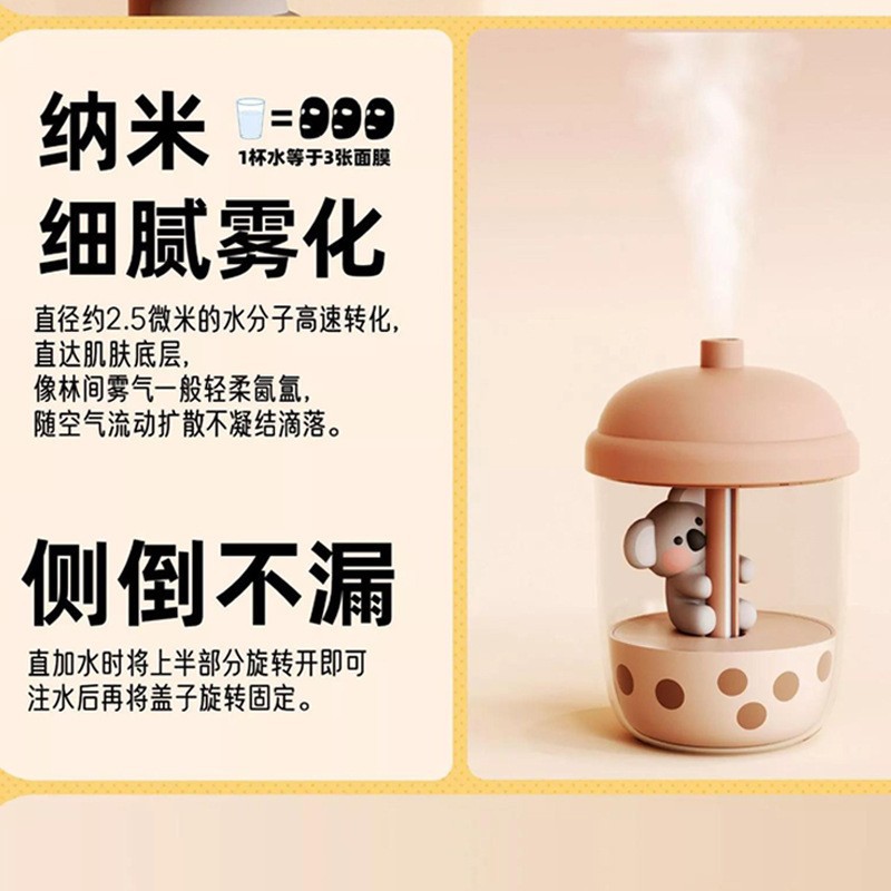 萌宠考拉奶茶杯加湿器大雾量家用小型便携桌面USB迷你加湿补水仪