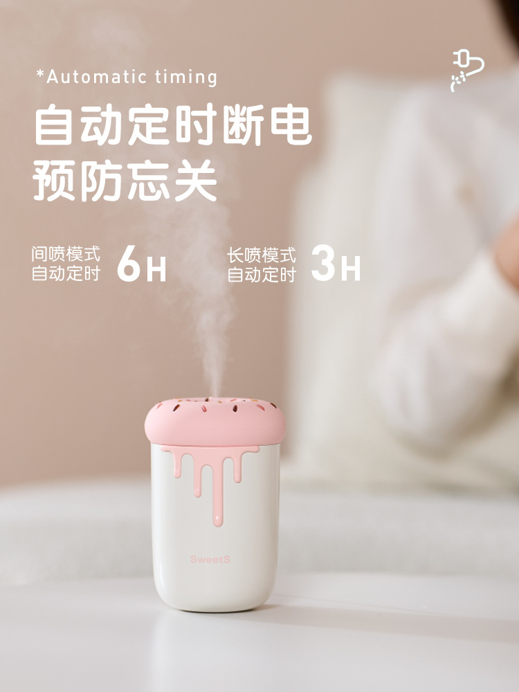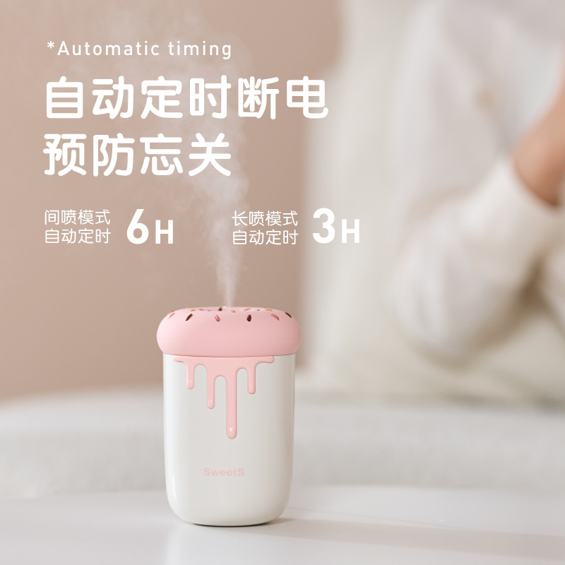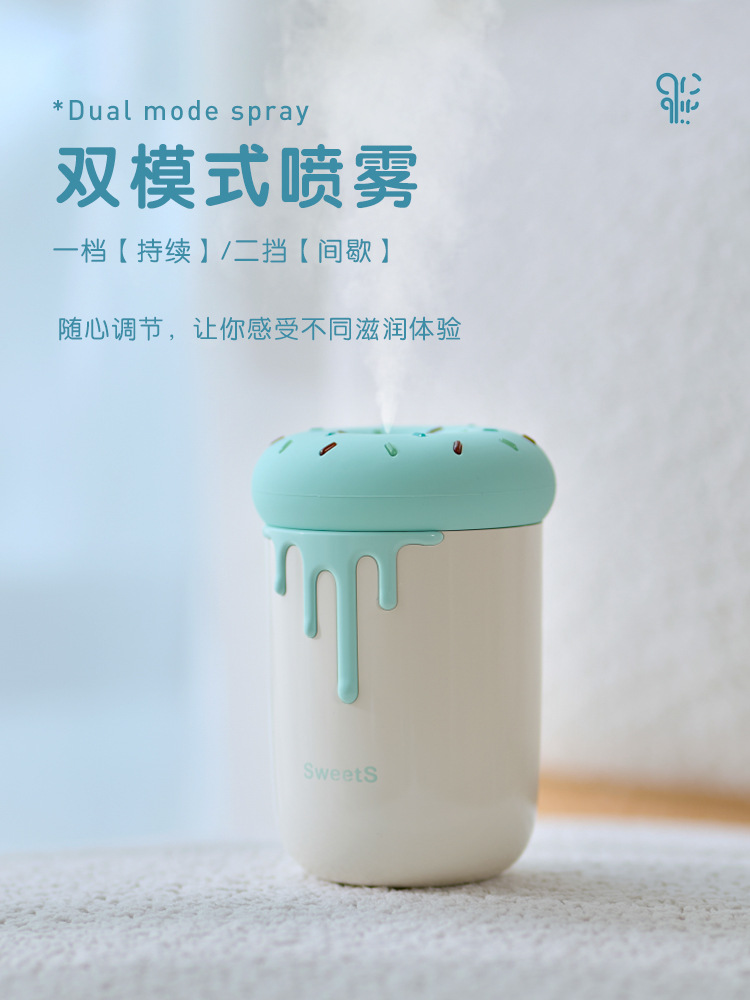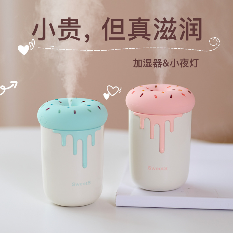 甜甜圈加湿器创意蘑菇冰淇淋杯带氛围彩灯USB补水仪甜心加湿器