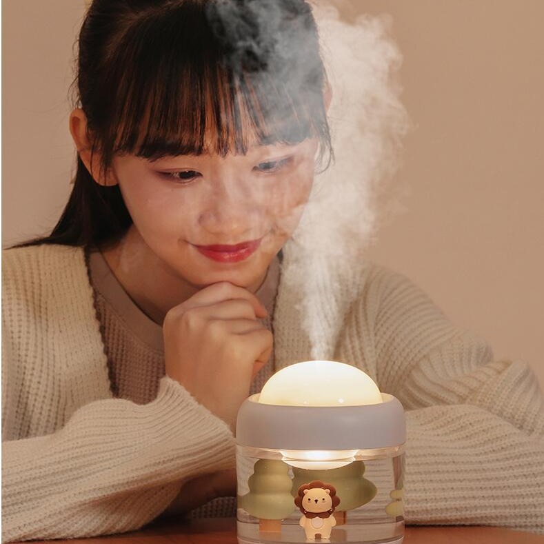 萌趣景观投影加湿器桌面usb静音创意投影灯补水仪加湿器夜灯