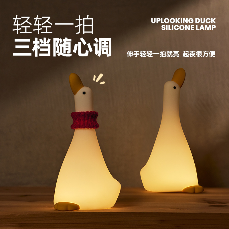 仰望鸭硅胶小夜灯拍拍灯儿童喂奶灯床头伴睡灯起夜灯USB充电